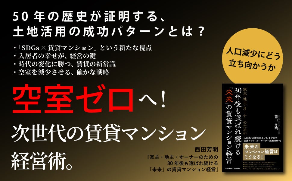 「空室ゼロ」を実現する次世代の賃貸マンション経営術とは?『家主・地主・オーナーのための30年後も選ばれ続ける「未来」の賃貸マンション経営』本日発売!