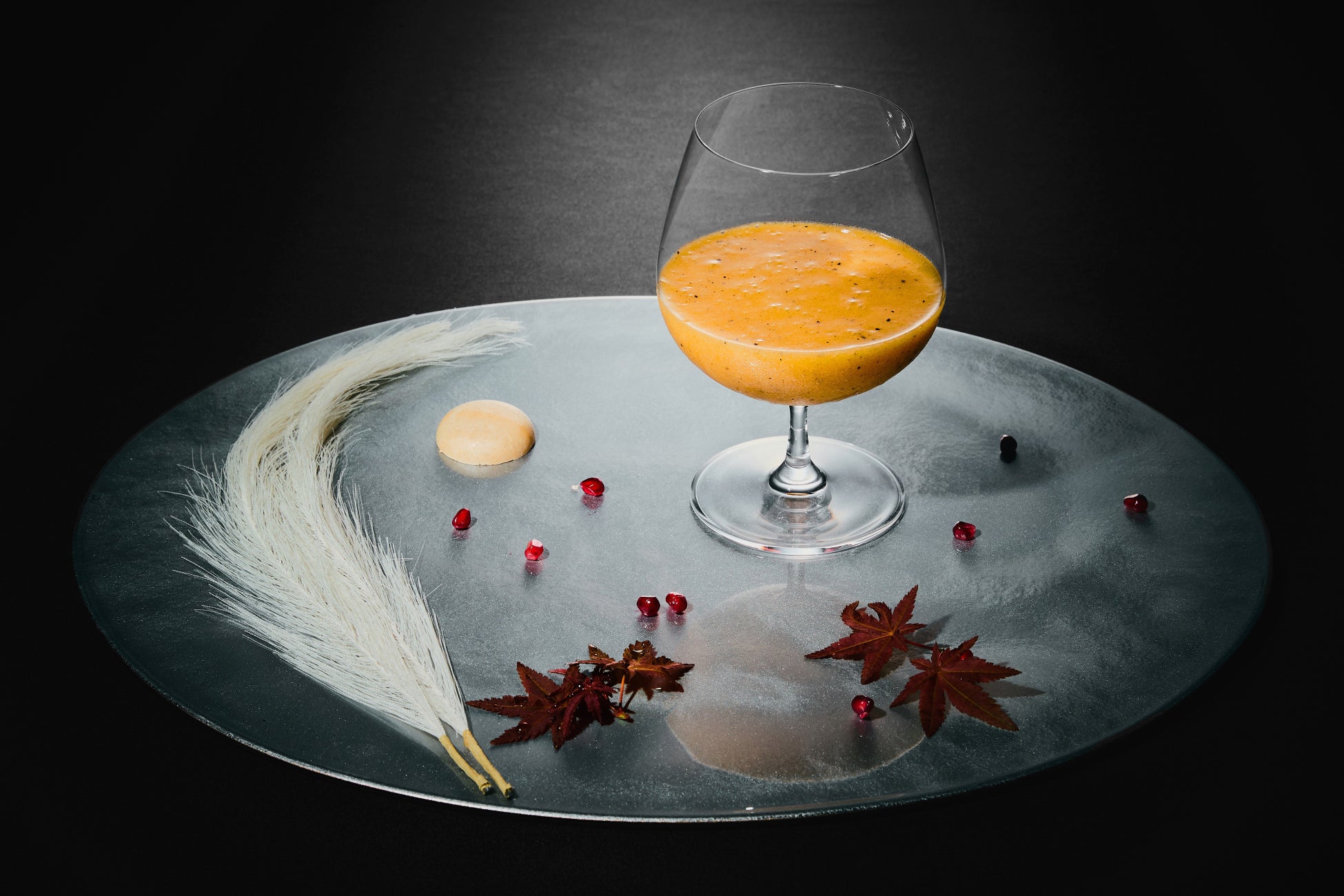 京都の日本酒と、フローズンにした柿やフレンチリキュールなどをあわせ、水面に艶やかに映る“満月”を表現しました。ビジュアルだけでなく、秋の味覚である柿の瑞々しさをカクテルとして再構築した芸術的な一杯で存分に秋をご堪能いただけます。