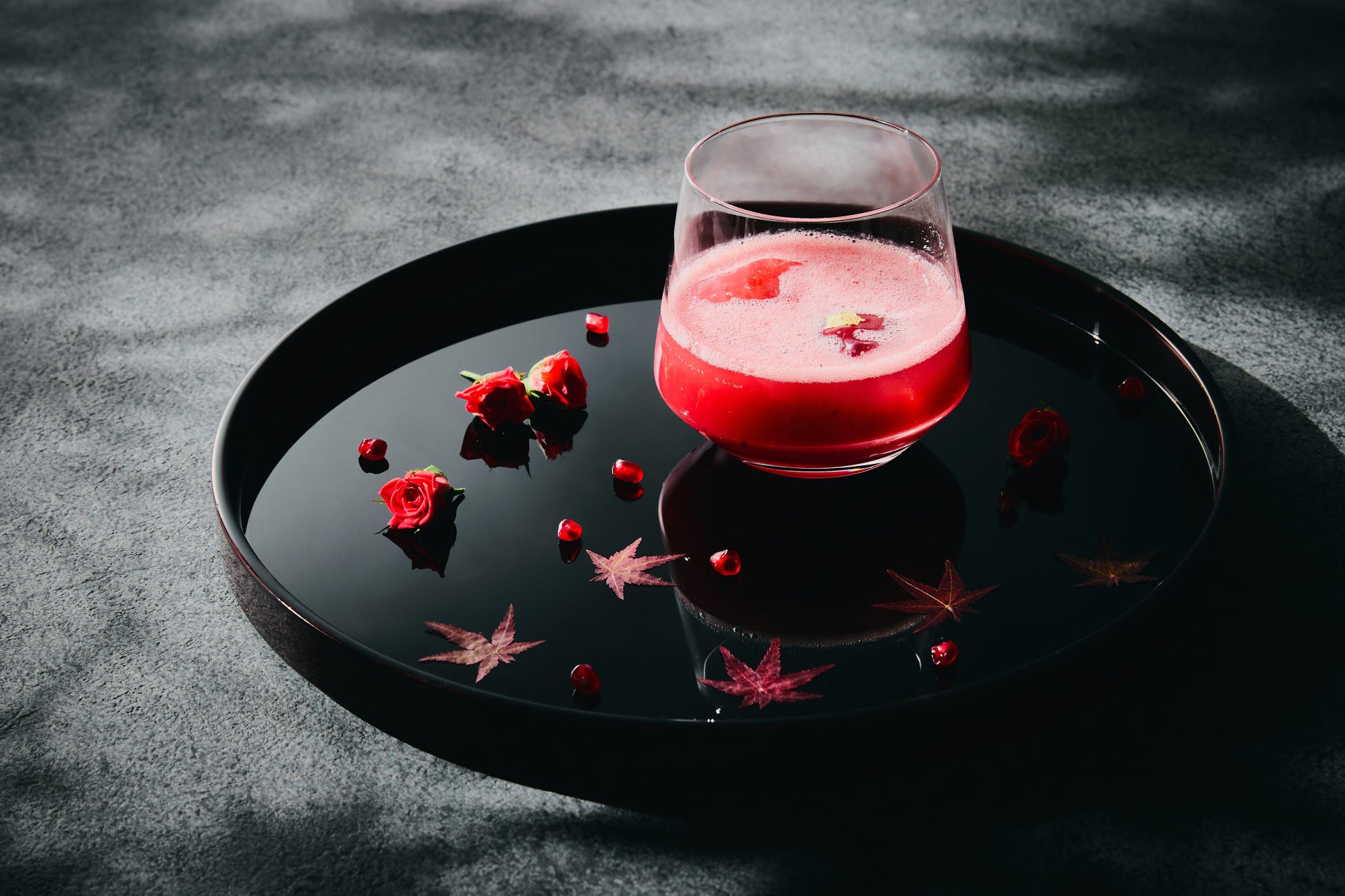 京都生まれの梅リキュールに、西瓜やベリーなどを合わせたカクテル。夏から秋に移ろい、紅葉で赤く染まった美しい洛中を表現しました。梅がもたらす落ち着きと一段深みのある味わいが特徴です。