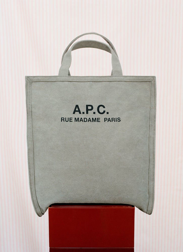 ミリタリーからインスパイアされたローキャンバスバッグ。サブレにはブラック、ブラックにはA.P.C.ロゴをホワイトスクリーンプリントであしらい実用性とファッション性を融合させたRecuperation ショッピングバッグです。