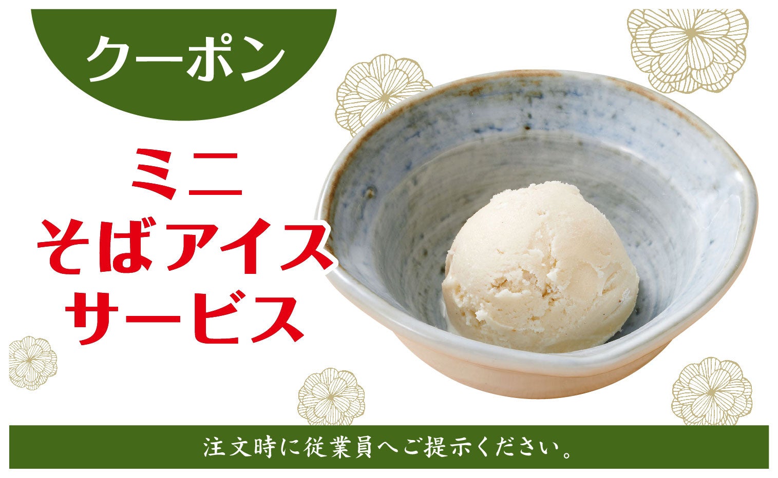 来店ごとに使える「そば増量無料」や「ミニデザート無料」などのクーポンのほか、期間限定の特別クーポンも随時更新しています。