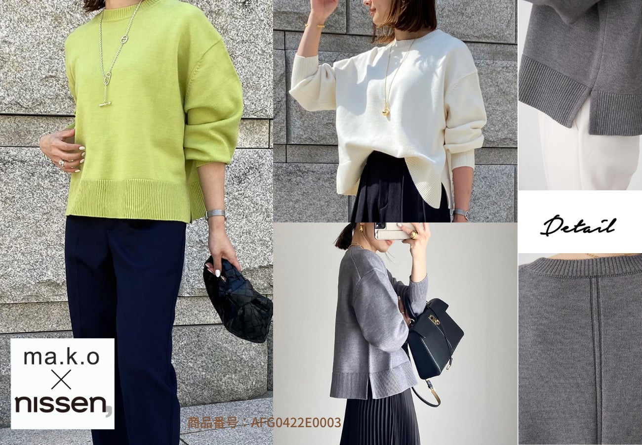 商品名:バックセンターライン クルーネックニット【ニッセン×_____ma.k.o】