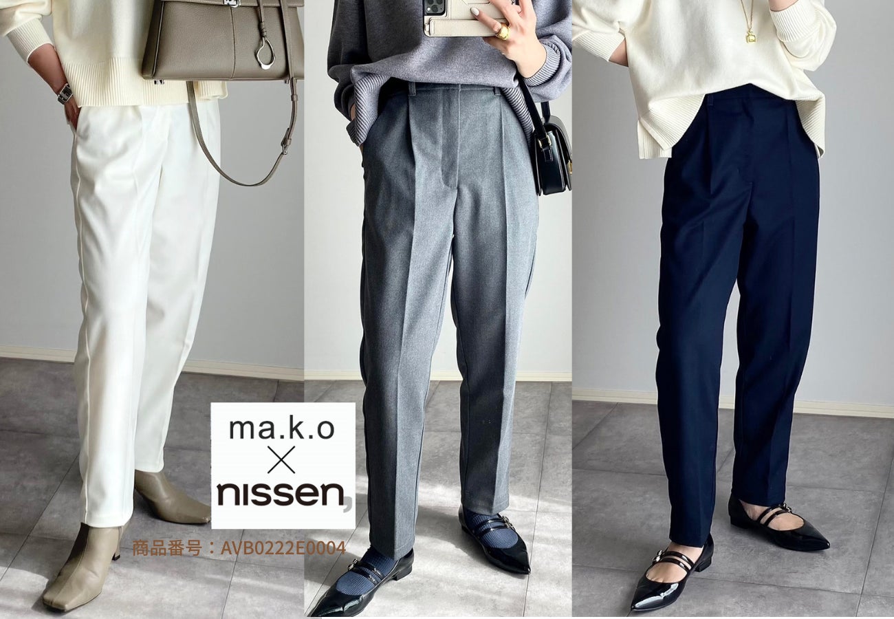 商品名:裏微起毛 タックテーパードパンツ【ニッセン×_____ma.k.o】