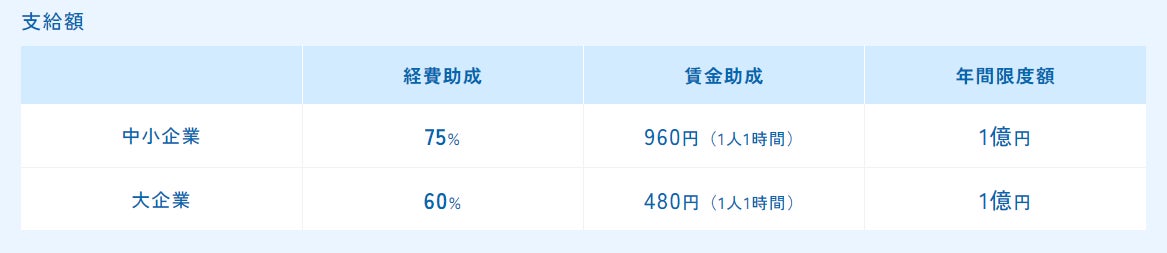 条件を満たした事業者には、研修費⽤の最大75%と960円/時までの賃⾦(中⼩企業の場合)が助成されます。 例えば、通常80万円(税込)の研修の場合、助成金を活用すれば実質20万円(税込)に費用を抑えることが可能です。