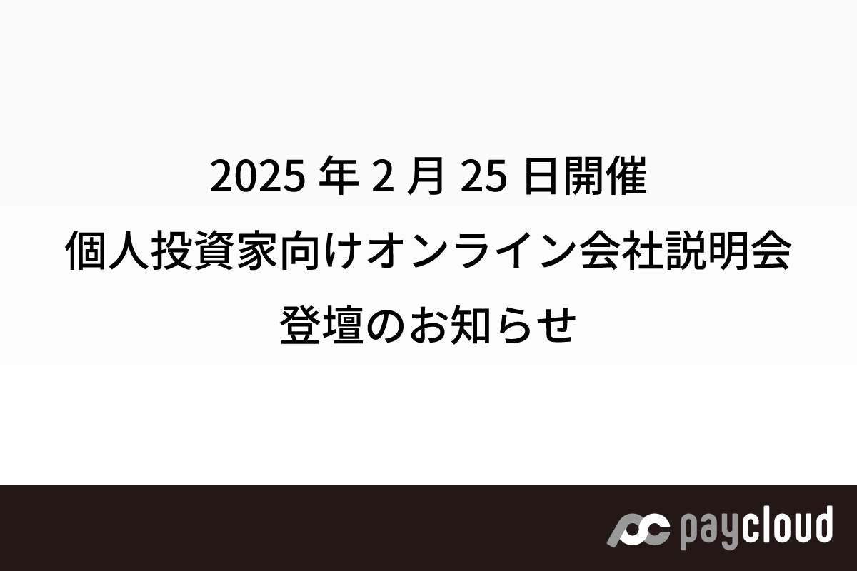 ■ペイクラウドホールディングス「個人投資家向けオンライン会社説明会」概要