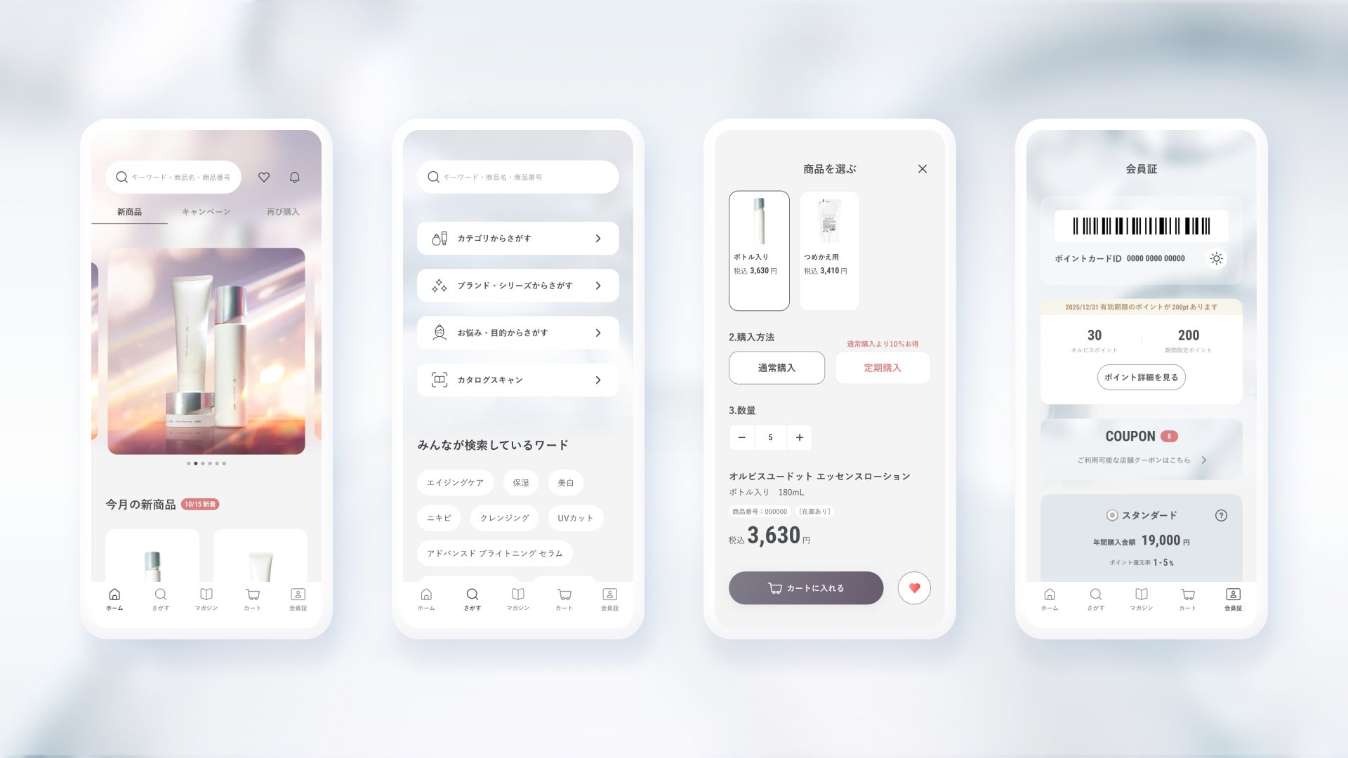ユーザー体験を踏まえ、アプリ全体のUIや情報設計を見直し、オルビスが提供するブランド体験を大切にしながら、より直感的で分かりやすいデザインに刷新しました。ウェブビューで表示されていた画面のネイティブ化やデザインの統一化を行うことでアプリが軽快に動作し、ストレスフリーな使い心地を実現するUXを目指しました。