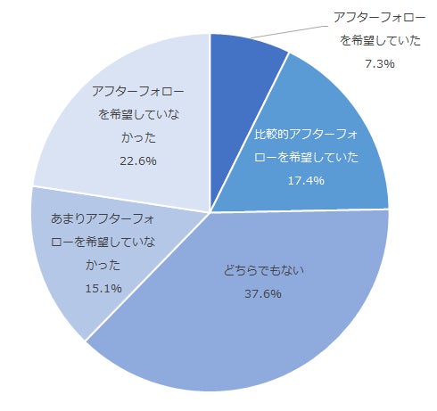 アフターフォローを希望していなかった回答者に対し、アフターフォローを受けたことでアフターフォローに対する重要性や必要性などの価値を感じるようになったか調査したところ、「価値を感じている」と回答した人は2.9%、「ある程度価値を感じている」と回答した人は17.5%となり、肯定的な回答をした人は2割程度にとどまりました。