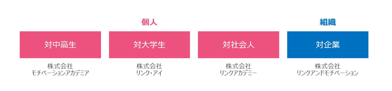 リンクアンドモチベーショングループは創業以来、「意味のあふれる社会を実現する」というミッションのもと、組織の「エンゲージメント」を高める事業を展開してまいりました。また、初等中等教育から大学、社会人に至るまで、人生のあらゆるライフステージにおけるキャリア支援を行い、「個人のキャリア形成」にも力を注いでいます。