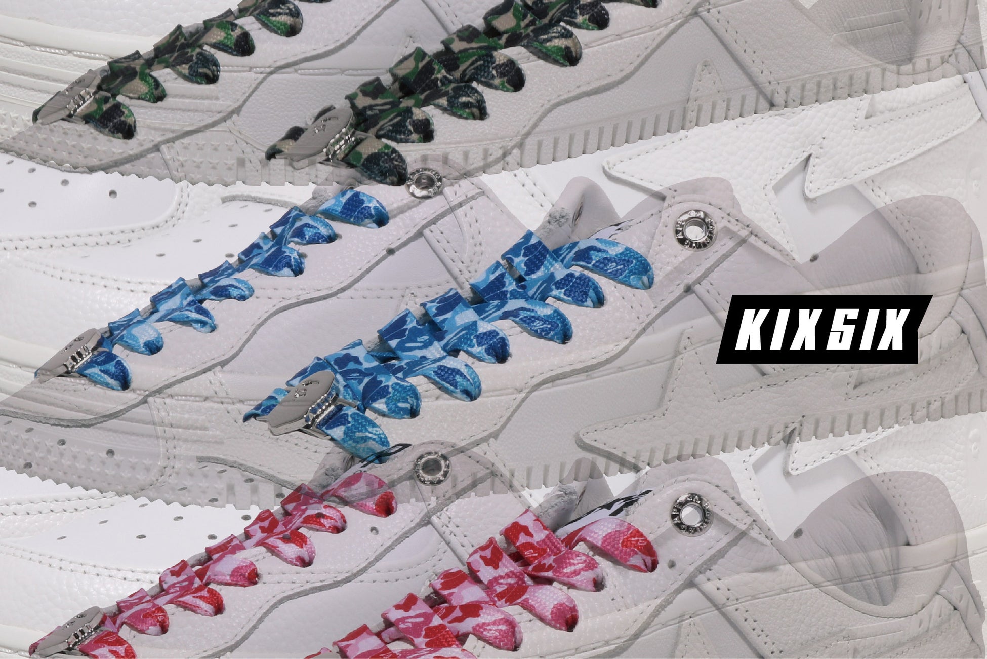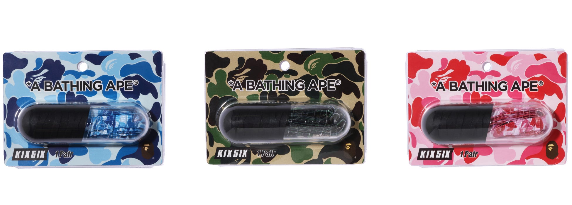 BAPE®︎ことA BATHING APE®︎はハイプなスニーカー用シューレースブランド<KIXSIX(キックスシックス)>とのチームアップしたシューレースを発表いたします。