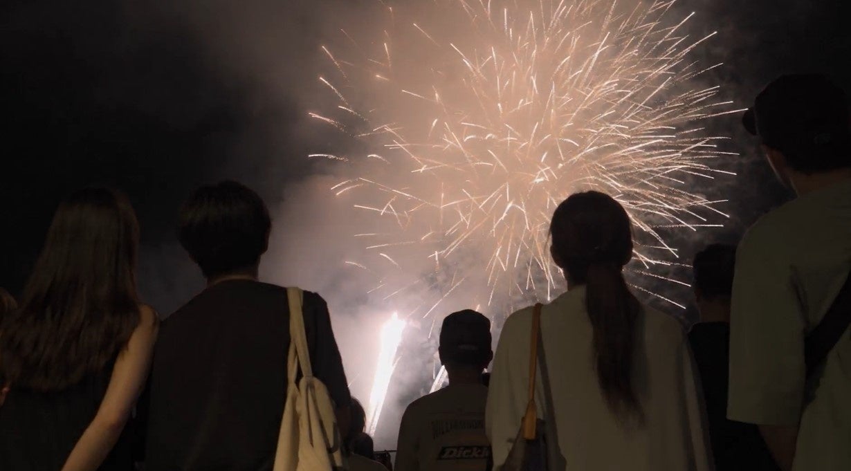 エモーショナルな音楽にのせて赤、青、緑、と色鮮やかな花火が御殿場の夜空を華やかに彩ります。間近で花火が打ち上がるたび、打ち上げ花火ならではの夏らしい「ヒュー…ドーンッ」という迫力のある音とともに、大きな歓声が上がりました。