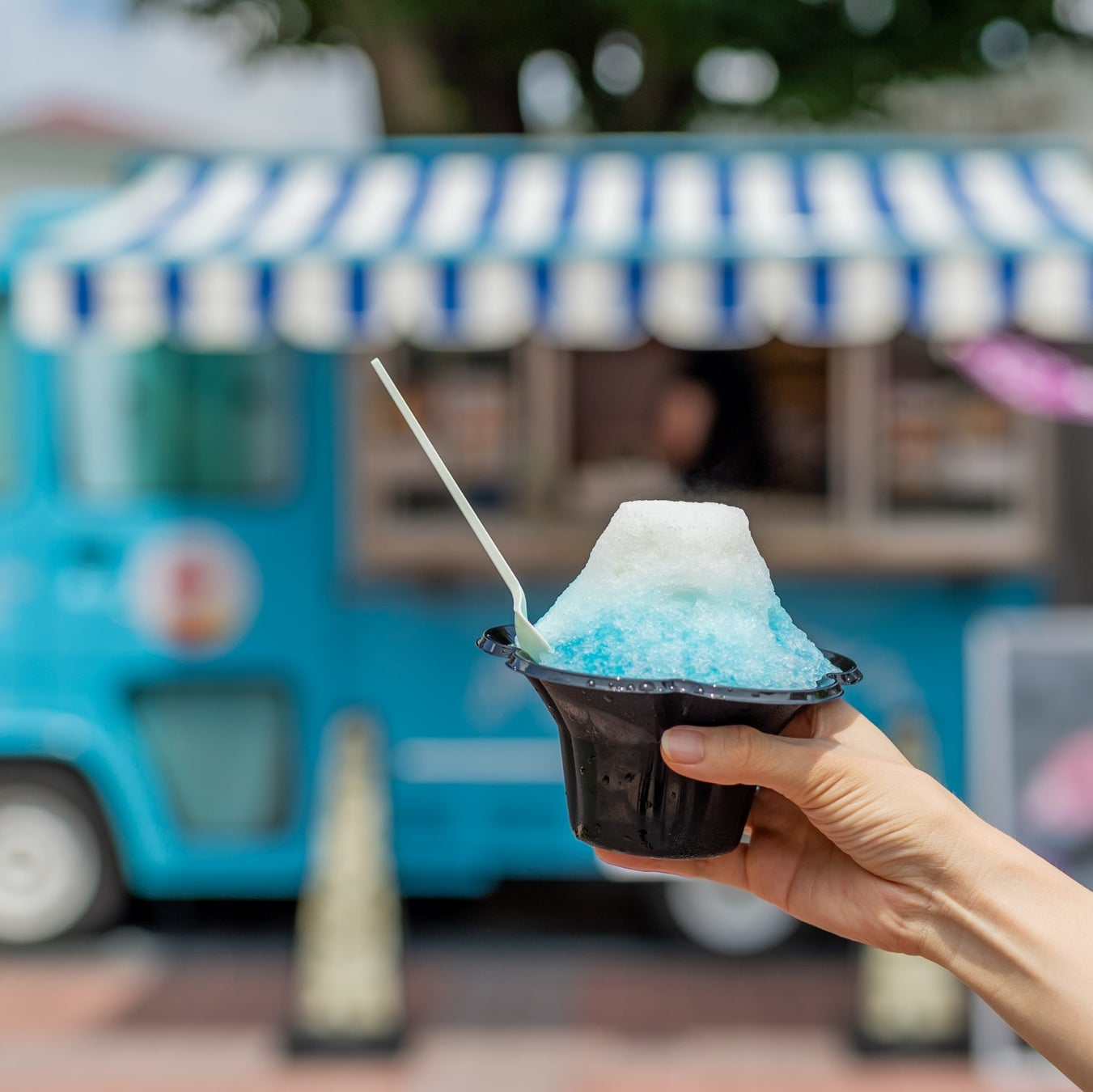 約33℃と真夏日になったこの日は、涼を求めて屋台キッチンカーのかき氷を食べる方も。特に富士山型の「富士山かき氷」は、場内から富士山が見える御殿場プレミアム・アウトレットならではのグルメとして盛況でした。会場では、お祭り気分を盛り上げるクレープ、富士宮焼きそば、串焼きなど、食欲をそそる匂いが漂い、お祭りムードも高まっていきます。