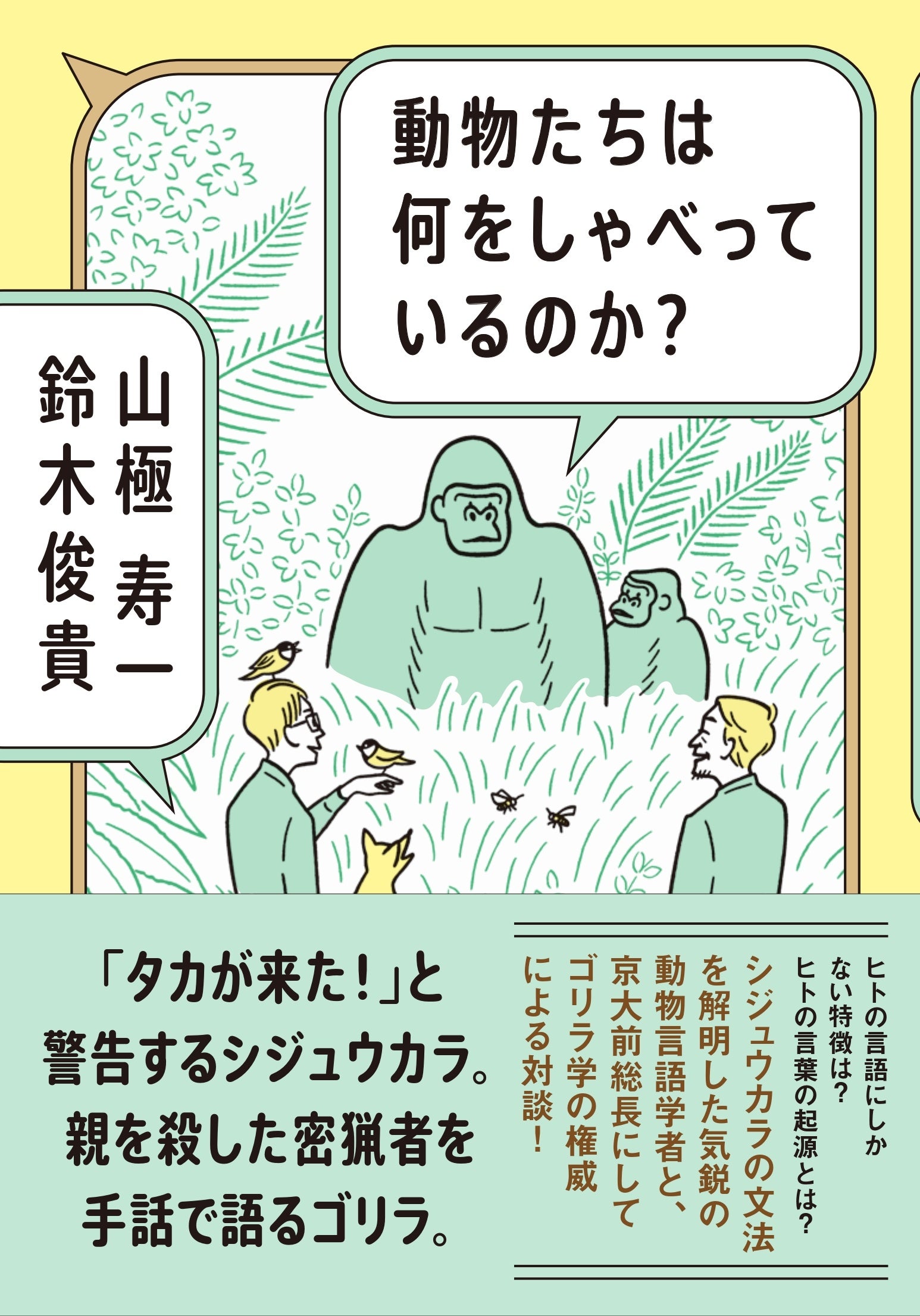 動物たちは何を考え、どんなおしゃべりをしているのか? ゴリラになりたくて群れの中で過ごした霊長類学者にして京大前総長の山極寿一氏と、シジュウカラの言葉を解明した気鋭の研究者・鈴木俊貴氏が、最新の知見をとことん語り合う対談本を集英社より8月4日に発売します。