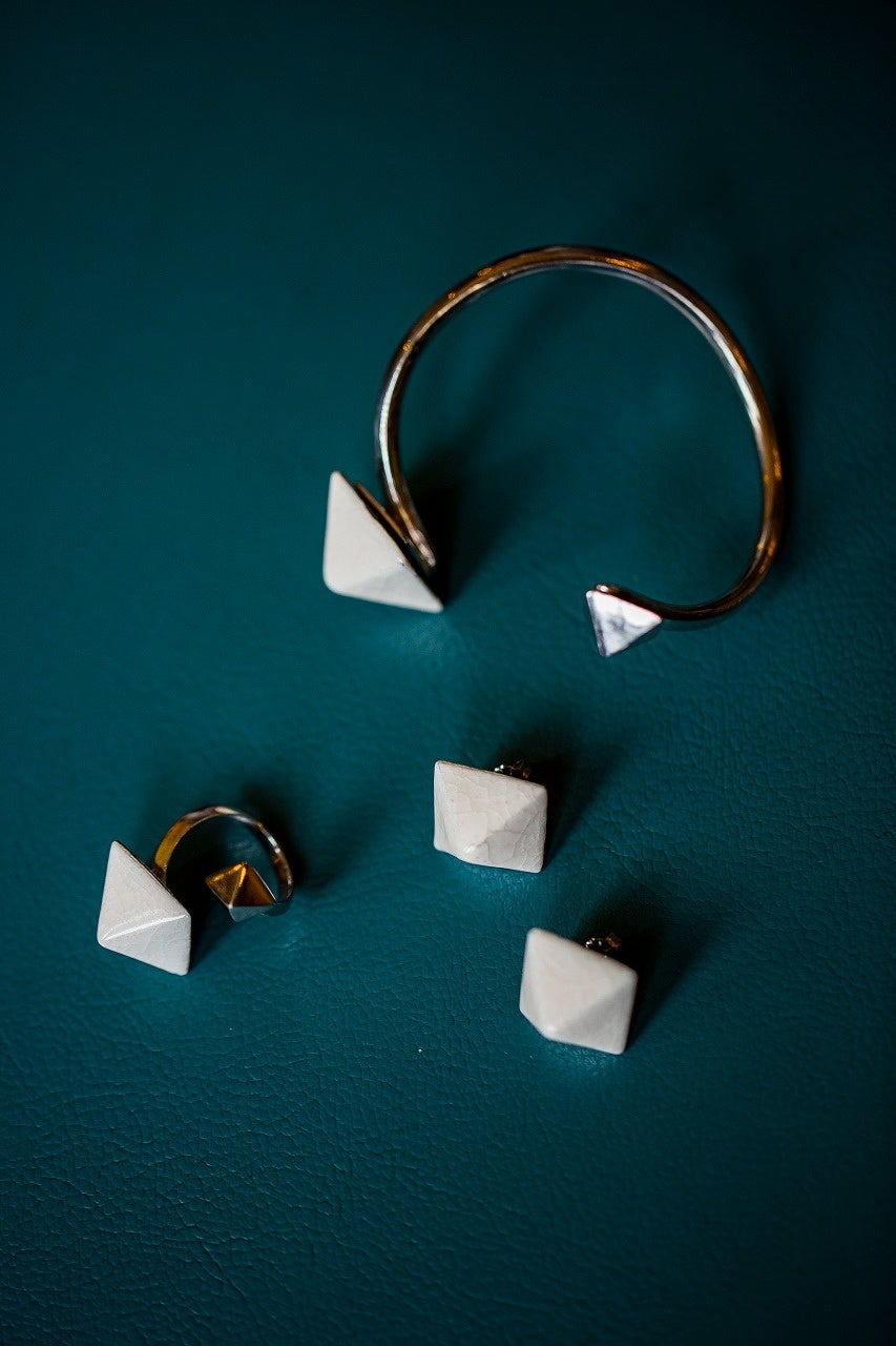 佐賀県肥前の陶磁器を宝石に見立て再構築したブランド〈HIZEN jewelry(ヒゼン ジュエリー)〉。「宝石を纏うように“やきもの”を纏う」がコンセプト。肥前地区を代表する5つの窯元の陶磁器をベースにしたジュエリーコレクションが〈HIZEN jewelry〉です。産地ごとに特性が異なる個性を持つ陶磁器をジュエリーという新たなカテゴリーで表現します。
