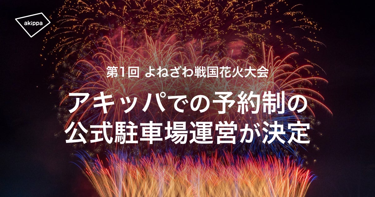 駐車場予約アプリ「アキッパ(akippa)」(以下、アキッパ)を運営するakippa株式会社(代表取締役社長 CEO:金谷元気)は、2024年10月12日(土)に山形県で開催される「第1回よねざわ戦国花火大会」にて完全予約制の公式駐車場運営をすることが決定しました。8月10日(土) 10:00より予約受付を開始します。