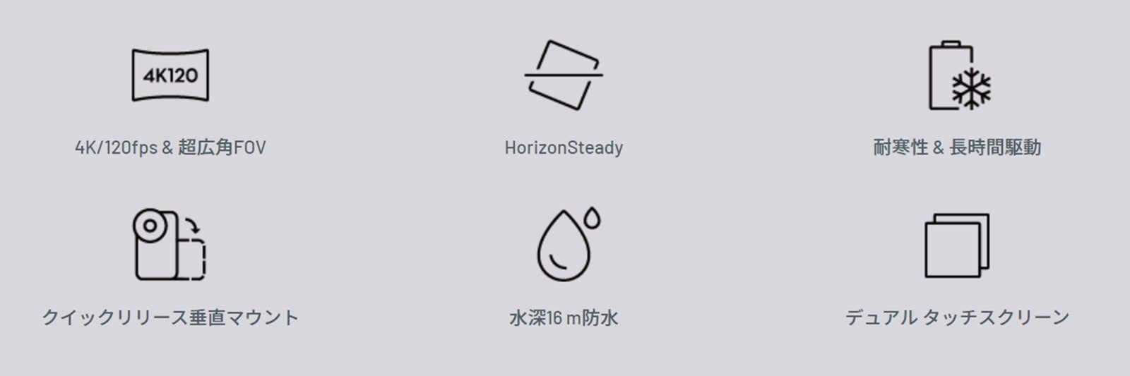4K/120fps撮影対応 1/1.7インチ CMOSセンサー搭載、あらゆる場所に瞬時に設置可能な自撮り対応アクションカム