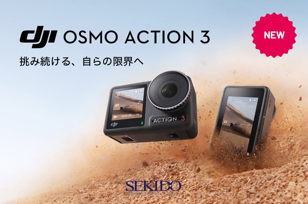 日本初のDJIドローン正規販売代理店である株式会社セキド(本社:東京都港区、代表取締役:⼤下貴之)では、2022年9月14日(水)より、DJIの最新アクションカメラ「DJI OSMO ACTION 3(ディージェイアイ オズモ アクション 3)」の先行予約販売を開始いたします。様々な環境でアクティブに楽しむシーンをもっとも手軽に撮影できるカメラに進化した3代目は、4K/120fps & 超広角FOV 155°の美しく滑らかでワイドな映像を捉えます。三脚や自撮り棒、カメラマウントに瞬時に付け外しできる強力なクイックリリース設計で、広がりのある横向き撮影と臨場感のある縦撮りにも対応します。直感的な操作性とAIによる簡単で印象的な編集が可能なアプリなどはじめてのアクションカメラとしても使いやすく、動画撮影の常識を変える DJI Osmo Action 3 の購入は、お買い得なセキドオリジナルセットがおすすめです。