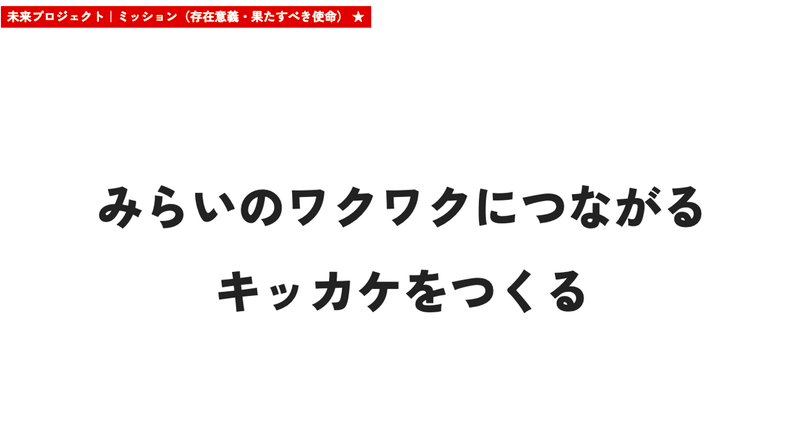 【未来プロジェクト全体のミッション・ビジョン・バリューが決定】『みらいのワクワクにつながるキッカケをつくる』「自分が主人公の人生を生きる人であふれる世界」