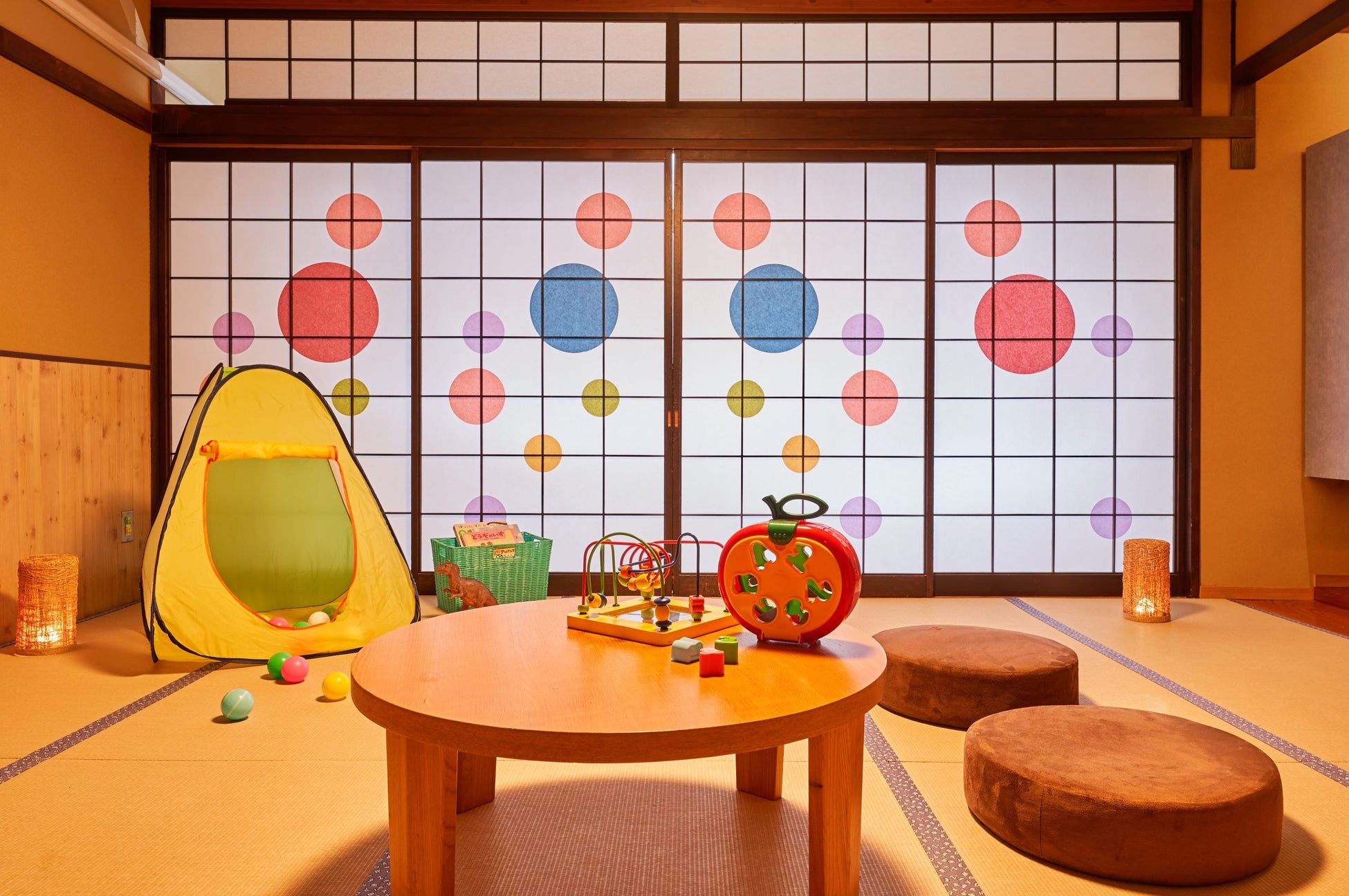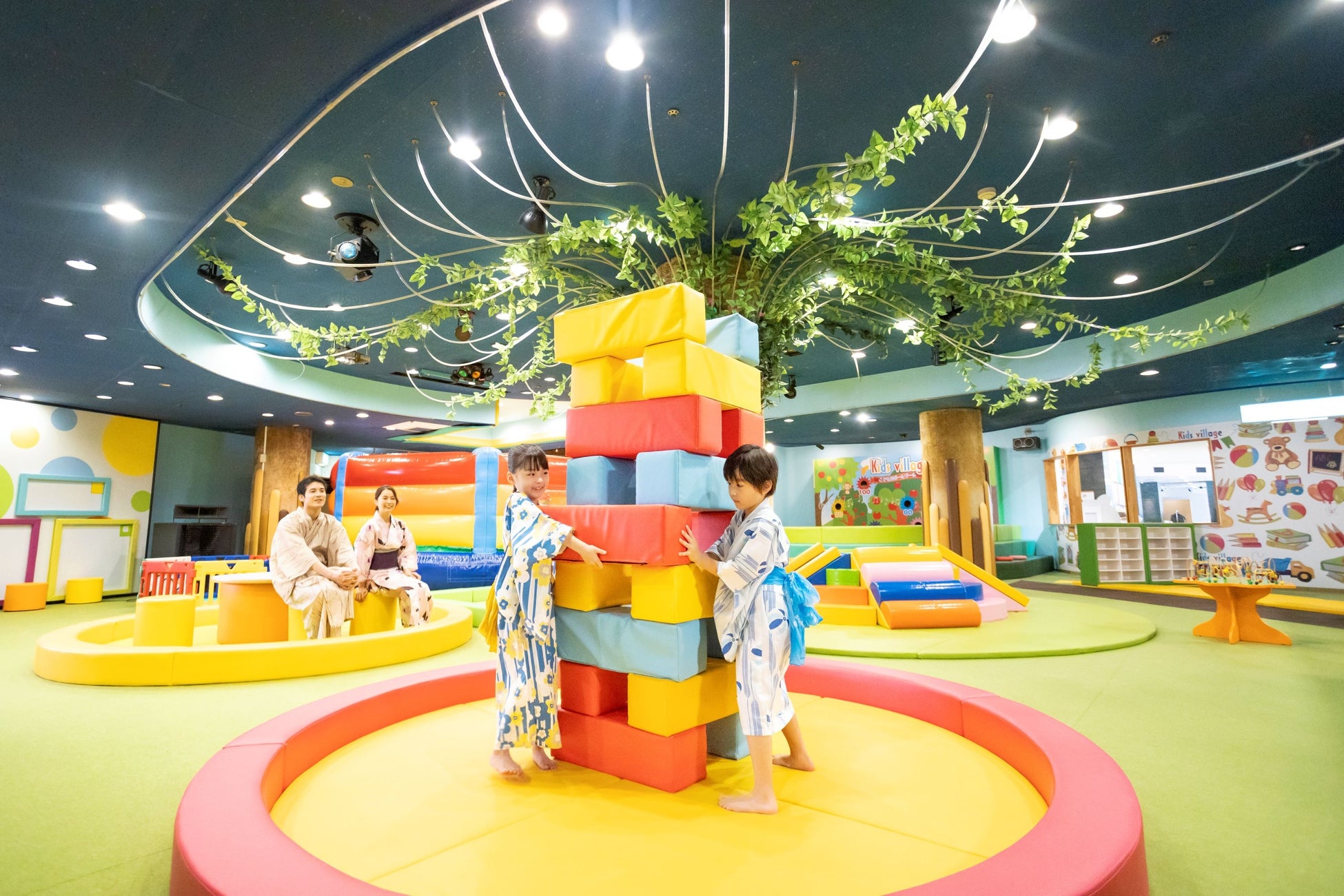 子育てファミリーに優しい宿として、大型キッズパークと充実した施設を完備。滑りにくい畳を使用した床は、お子様の温泉デビューに最適です。レストランにはキッズメニューと遊び場を用意し、家族全員が楽しめる空間を提供いたします。