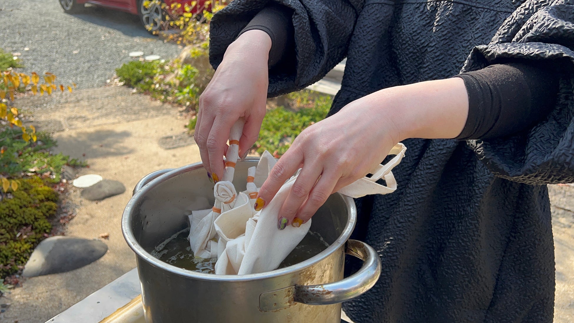 この度、NIPPONIA HOTEL 八女福島 商家町では、農薬無使用の八女茶を使用し、久留米絣のサコッシュを茶葉で染める茶染め体験を提供開始いたしました。