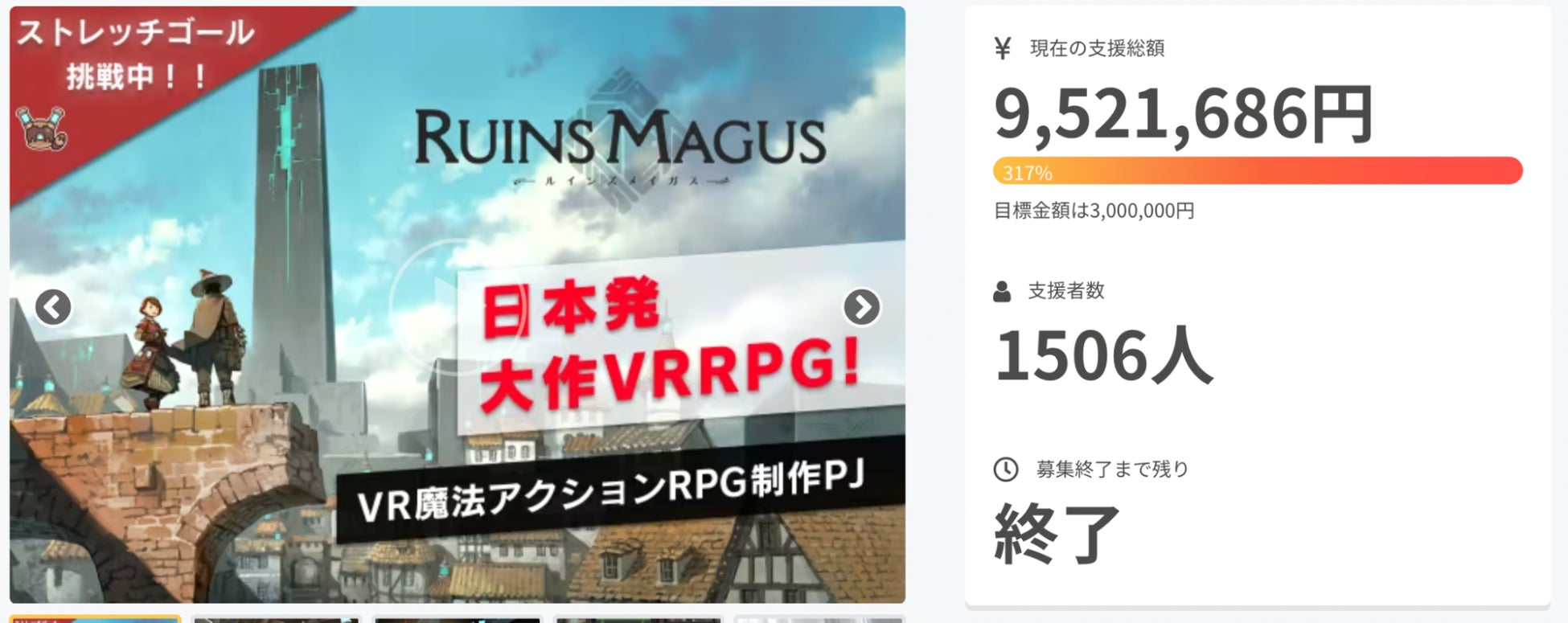 実施いただいたプロジェクト:日本発大作RPG!VR魔法アクションRPG『RUINSMAGUS』制作PJ!