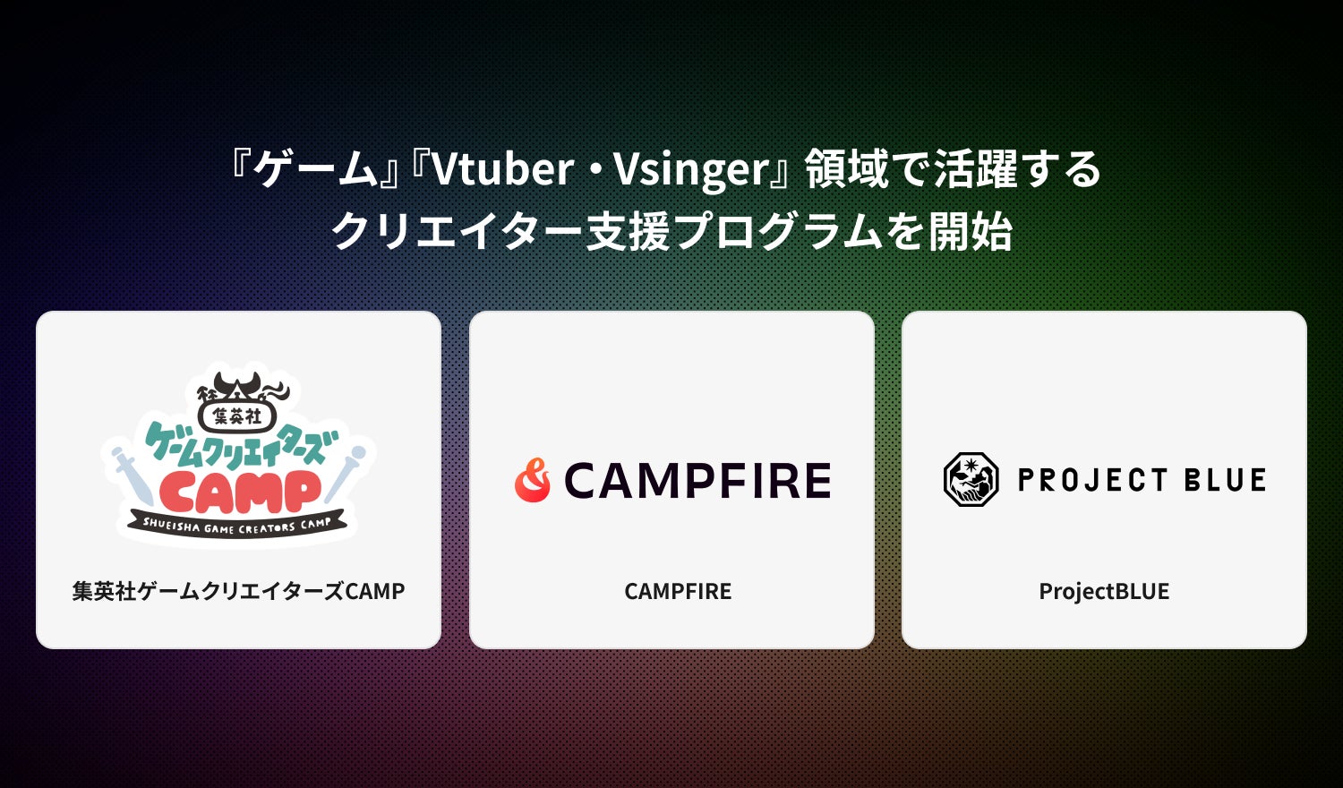 CAMPFIRE、集英社ゲームクリエイターズCAMP、ProjectBLUEと連携し『ゲーム』『Vtuber・Vsinger』領域で活躍するクリエイター支援プログラムを開始