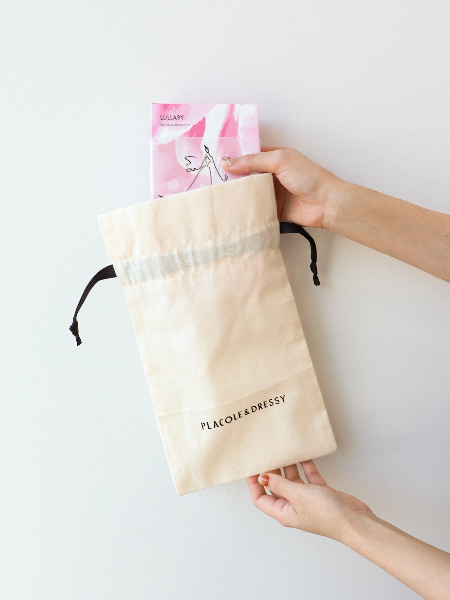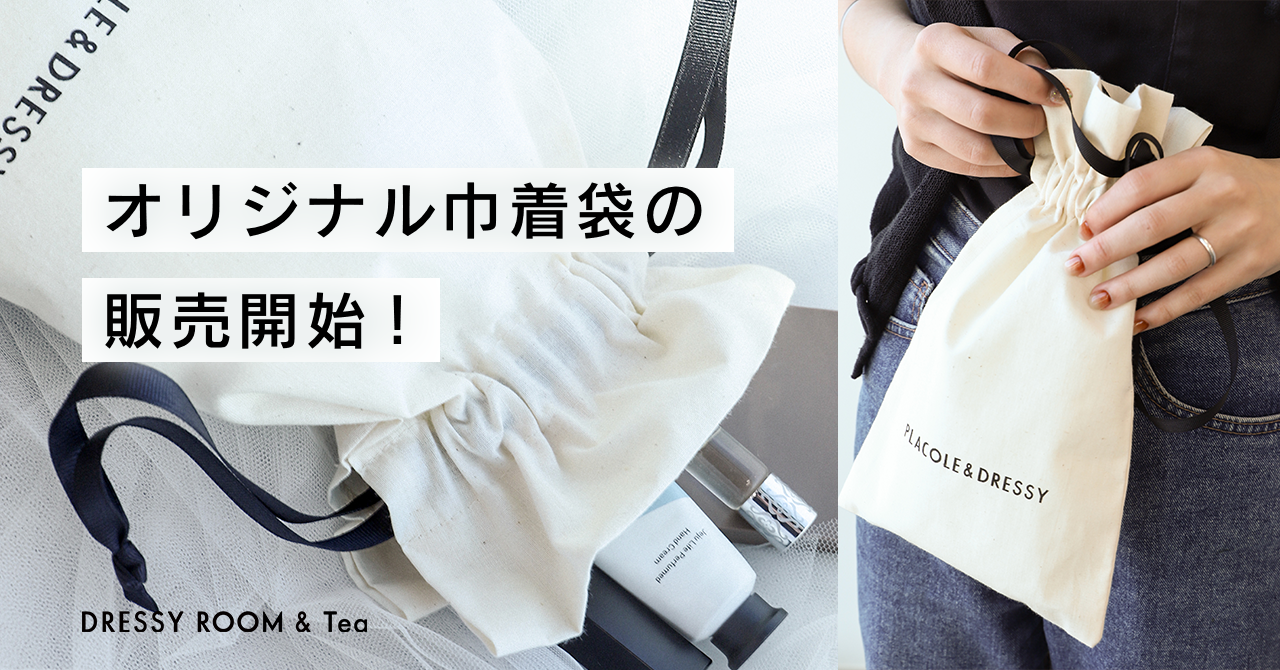 【DRESSY ROOM&Tea】ご自身の普段使いに!大切な人への贈り物に!PLACOLE&DRESSYロゴの入った『オリジナル巾着袋』EC&店頭にて発売のお知らせ