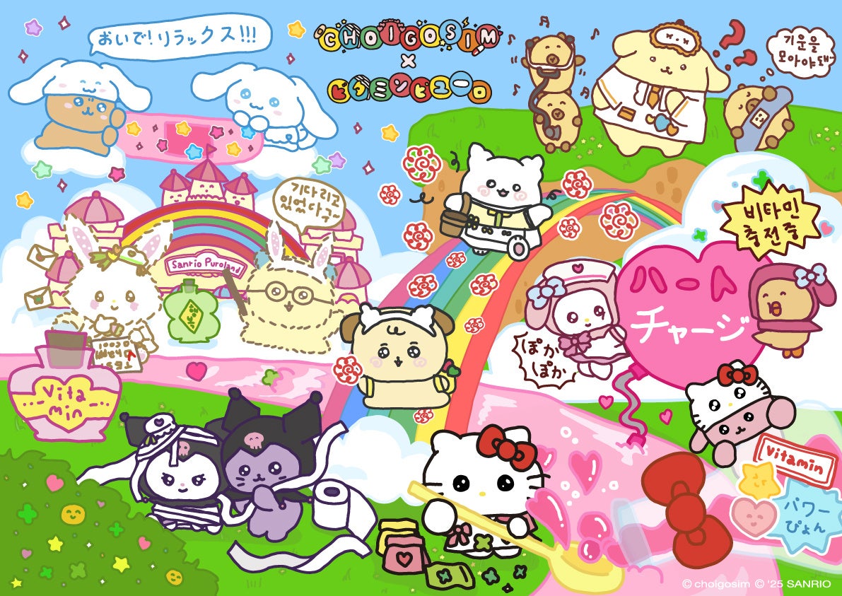 4月11日から6月3日までの期間限定で開催される本イベントでは、「私たちがあなたのビタミンだよ!」をテーマに、ポジティブで明るいメッセージを発信し続ける「チェゴシム」とサンリオのキャラクターたちがさまざまなコンテンツを通じて“癒しとハッピーのパワー”を届けます。開催中は、ピューロランドの館のレストランやエントランスショップなどが「チェゴシム」コラボデザインの特別仕様となるほか、ドクターやナースをイメージしたかわいらしい新コスチューム姿のサンリオキャラクターたちを「チェゴシム」描き下ろしたビジュアルを使用したフォトスポットの設置や、心にもお腹にもビタミンをチャージできるコラボフードメニューの提供、「ラッキーカード」をはじめとする期間限定グッズの販売などを行います。そのほか、サンリオキャラクターによる期間限定パレードやスペシャルグリーティングも開催されます。