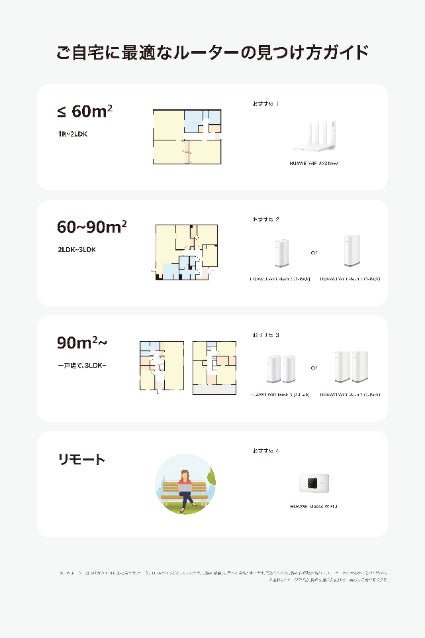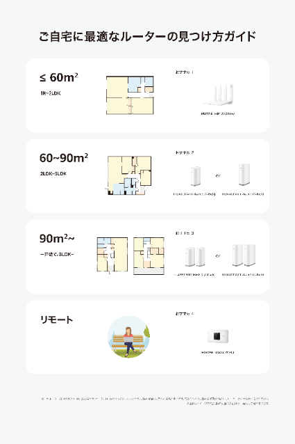 ファーウェイのWi-Fiルーターは、広さや用途に合わせてお選びいただけるフルラインナップで展開中。ご自宅の広さに合わせて最適な製品を見つけてください。また、外出時にもお使いいただけるモバイルWi-Fiルーターもご用意。ご自宅でも外出先でも、ファーウェイのWi-Fiルーターで快適なインターネットをお楽しみください!