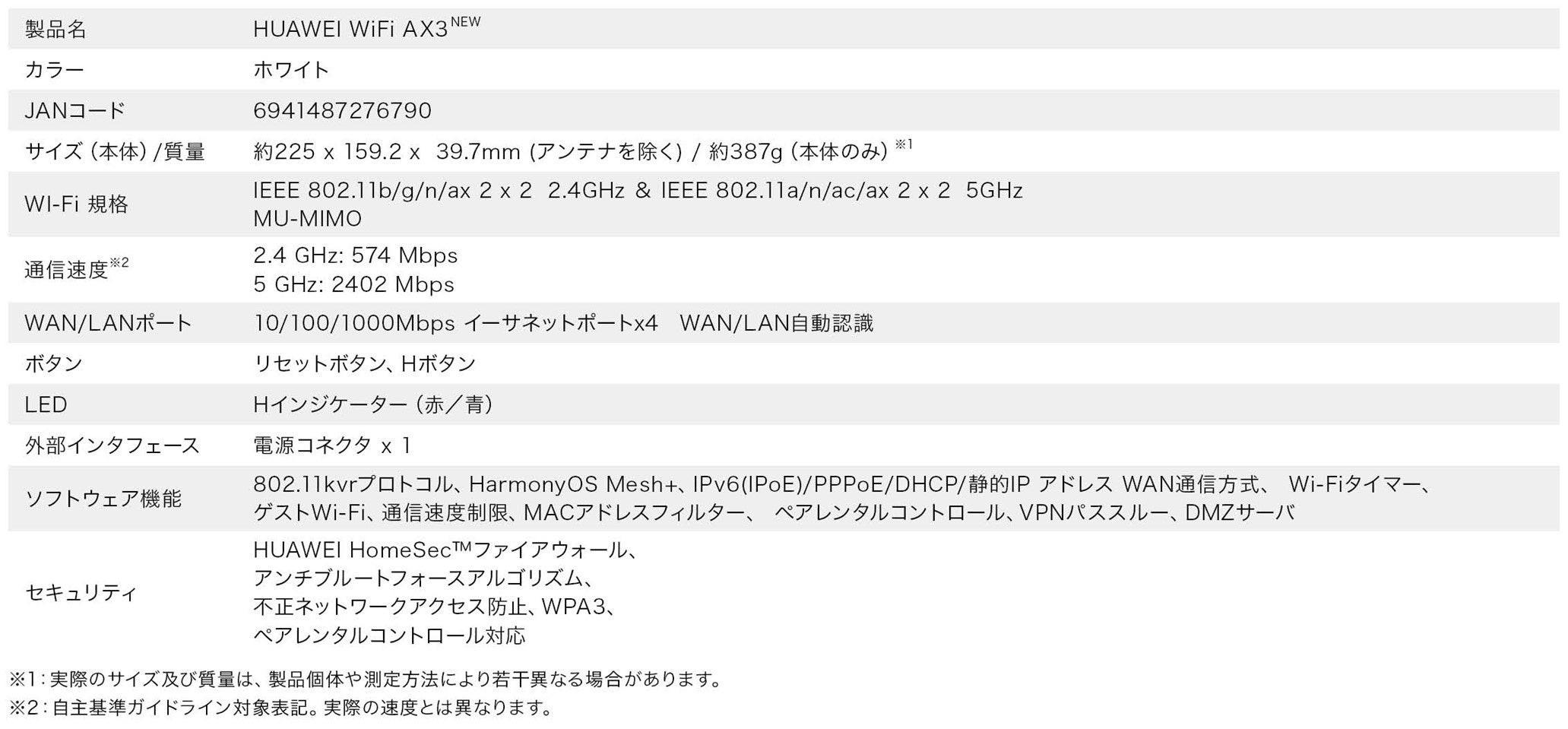 『HUAWEI WiFi AX3 NEW』の主な仕様