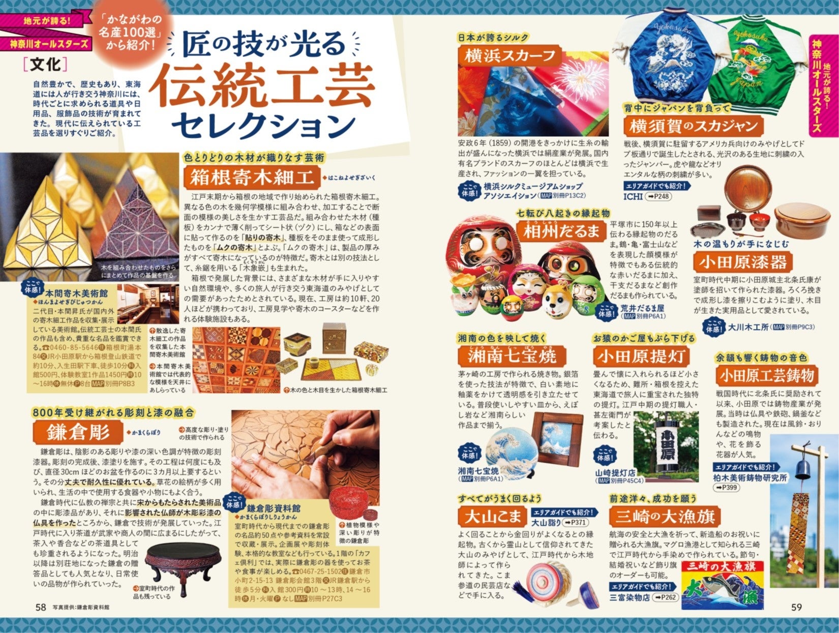 巻頭特集では、海、山、歴史、グルメ、祭り、工芸などなど、神奈川県のことをもっと知ることができるテーマ特集も豊富に掲載しています。