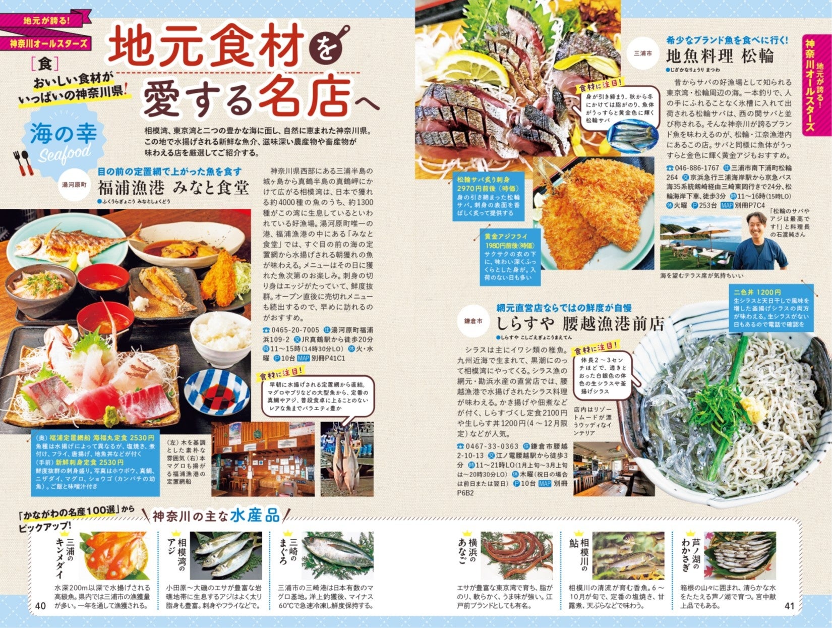このほか、かながわ観光親善大使を務める石塚英彦さん、ふじさわ観光親善大使のつるの剛士さん、観光情報サイト「アットヨコハマ」ナビゲーターの小田えりなさんなど、神奈川LOVEな有名人や、地元メディアのインタビューも多数掲載。神奈川ツウな人たちからの耳寄り情報をキャッチできます!