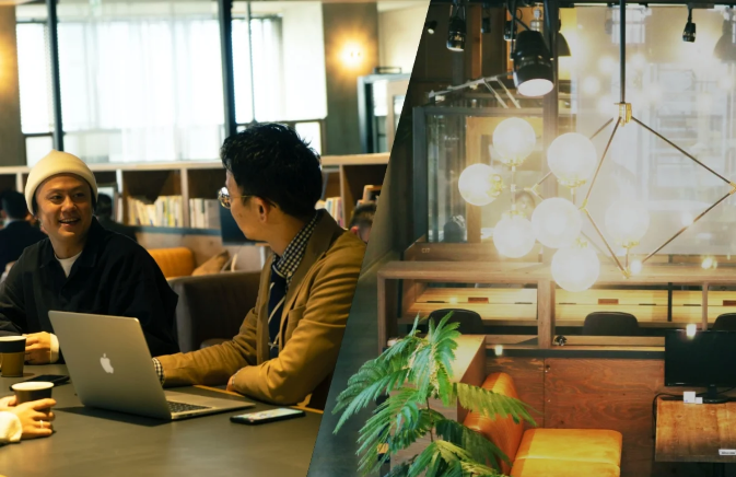 カフェのリラックスした空間とオフィスの快適な設備を兼ね備え、約520平米(157坪)の広々とした空間で快適なワークタイムを提供します。