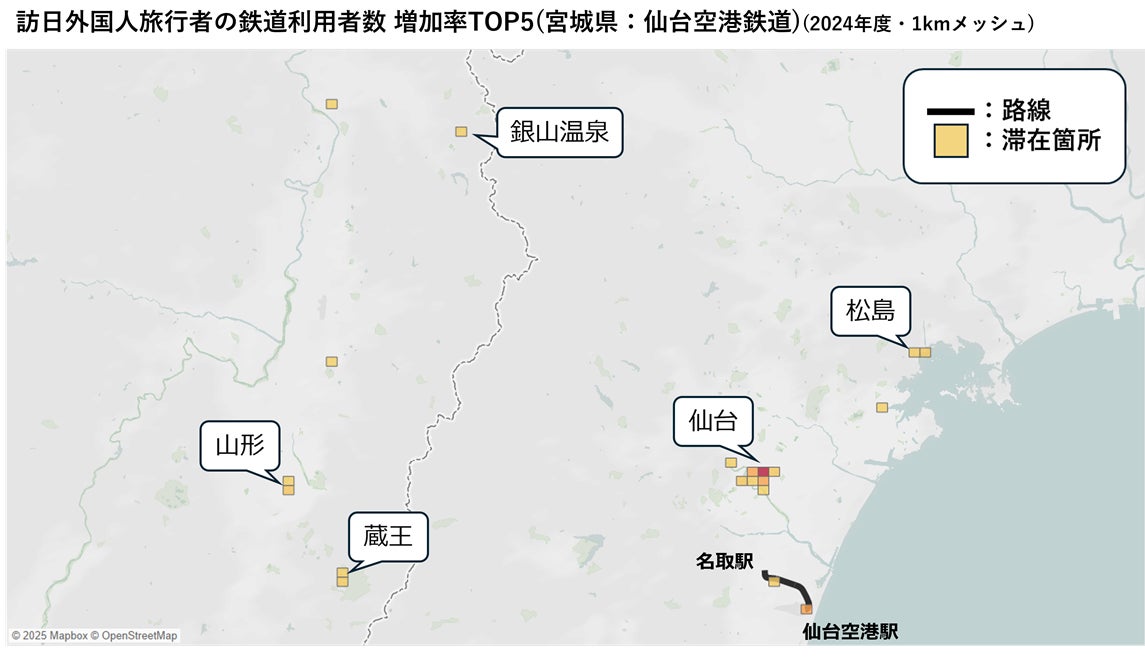 ※「インバウンドGPS」データをもとに、鉄道利用区間から駅や路線を推定し、乗降駅や路線別の利用実績(実人数)を分析。
