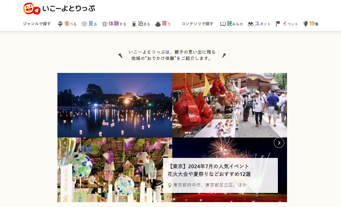 「いこーよとりっぷ」は、国内最大級の親子向けお出かけ情報サイト「いこーよ」と連携しており、お出かけに興味を持つファミリーに自治体の「まち」の情報を届けることができます。