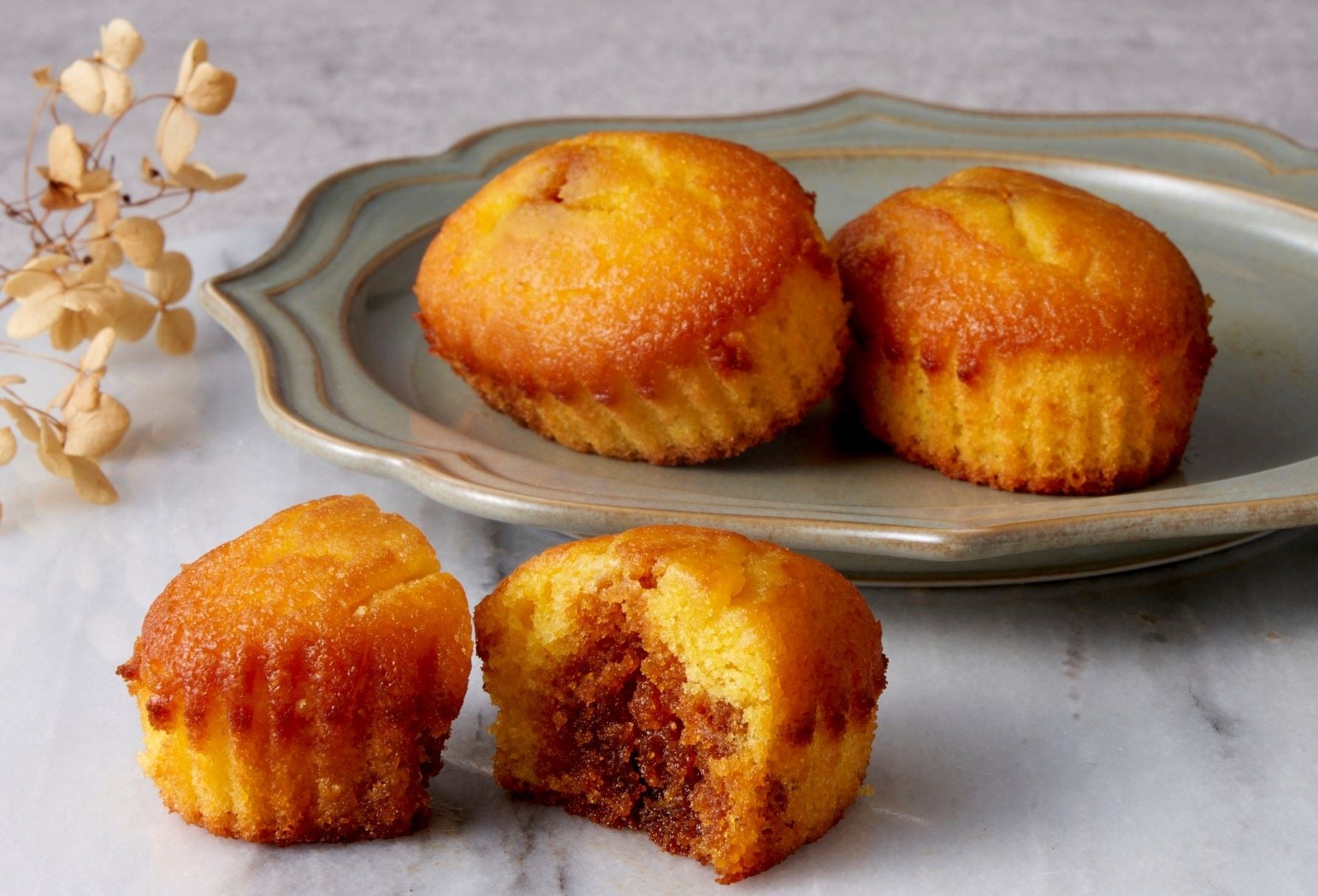 濃厚なおいもの香りのフィナンシェ生地の中にカラメルソースをたっぷり入れました。
