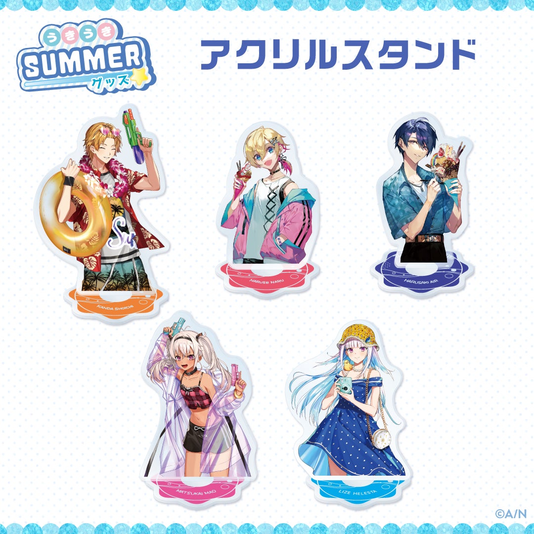 神田笑一、成瀬鳴、春崎エアル、魔使マオ、リゼ・ヘルエスタの「にじさんじ うきうきSUMMERグッズ」グッズが登場!