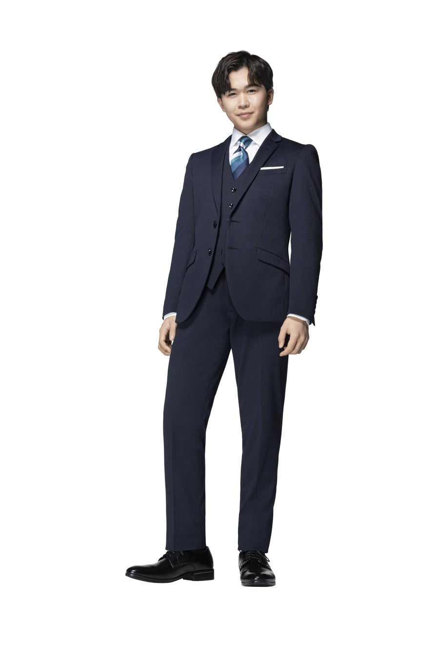 メンズからは“脚長シルエット”を基本とした「ブラックスリムスーツ」「ネイビースリーピース」「万能ブラックスーツ」を販売いたします。