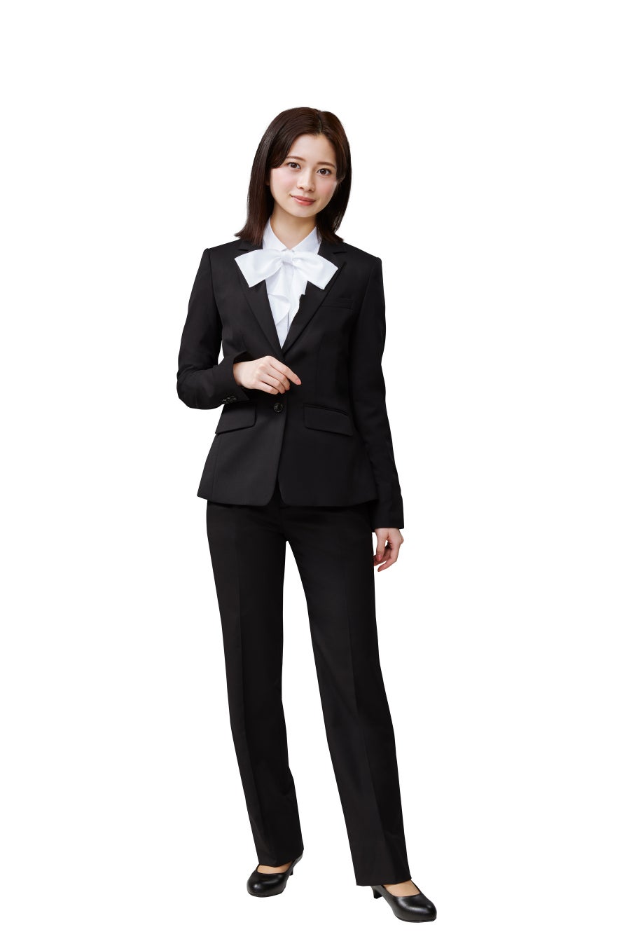 レディスも“美脚シルエット”を実現した「ブラックスーツ(パンツスタイル)」「ネイビースーツ(スカートスタイル)」「ネイビースーツ(パンツスタイル)」を取り揃えました。
