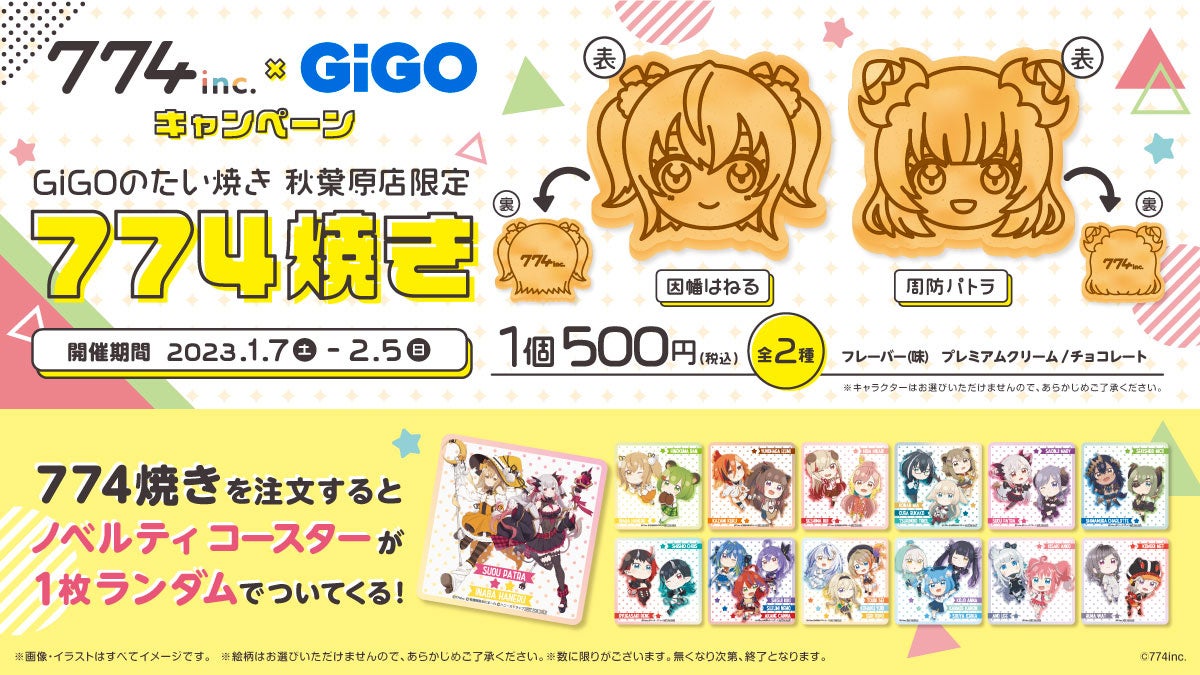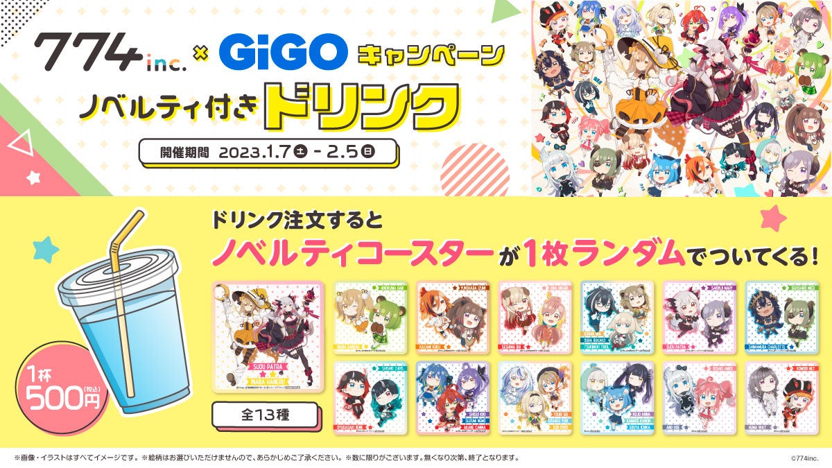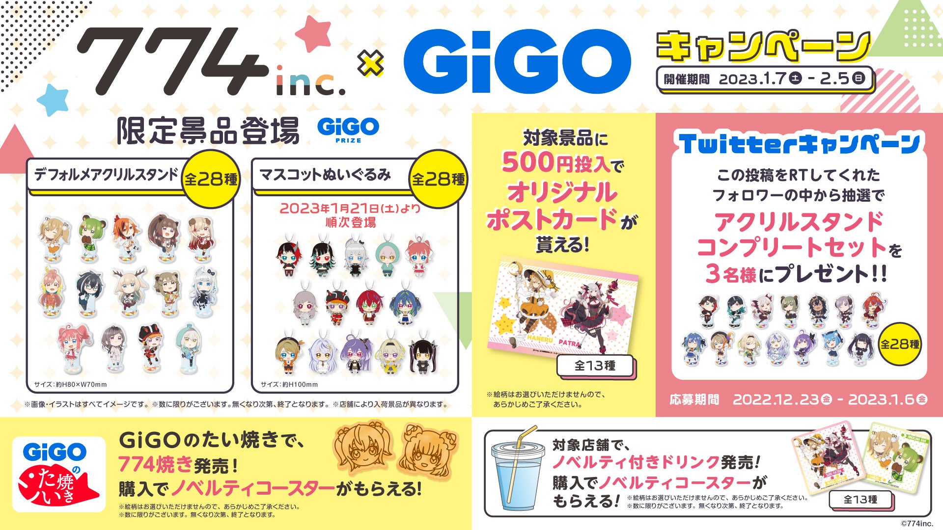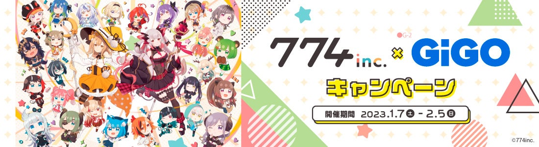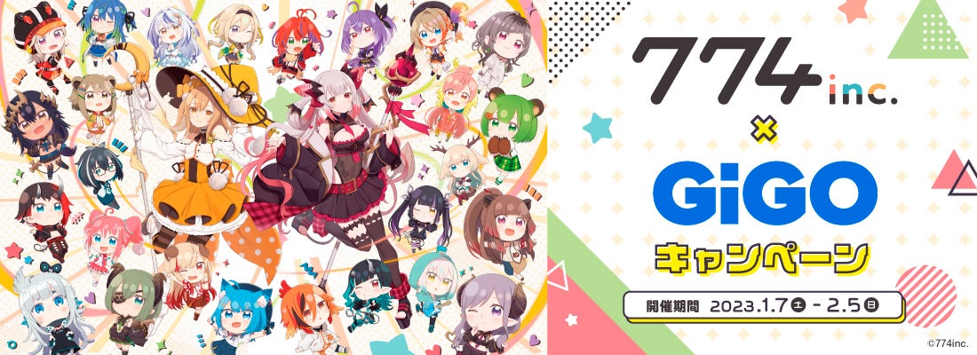 株式会社GENDA GiGO Entertainment(本社:東京都港区 代表取締役社長:上野 聖 以下、当社)は、GiGOグループのお店におきまして2023年1月7日(土)より、Vtuber事務所「774inc.」とタイアップした「774inc.×GiGOグループのお店キャンペーン」を開催いたします。
