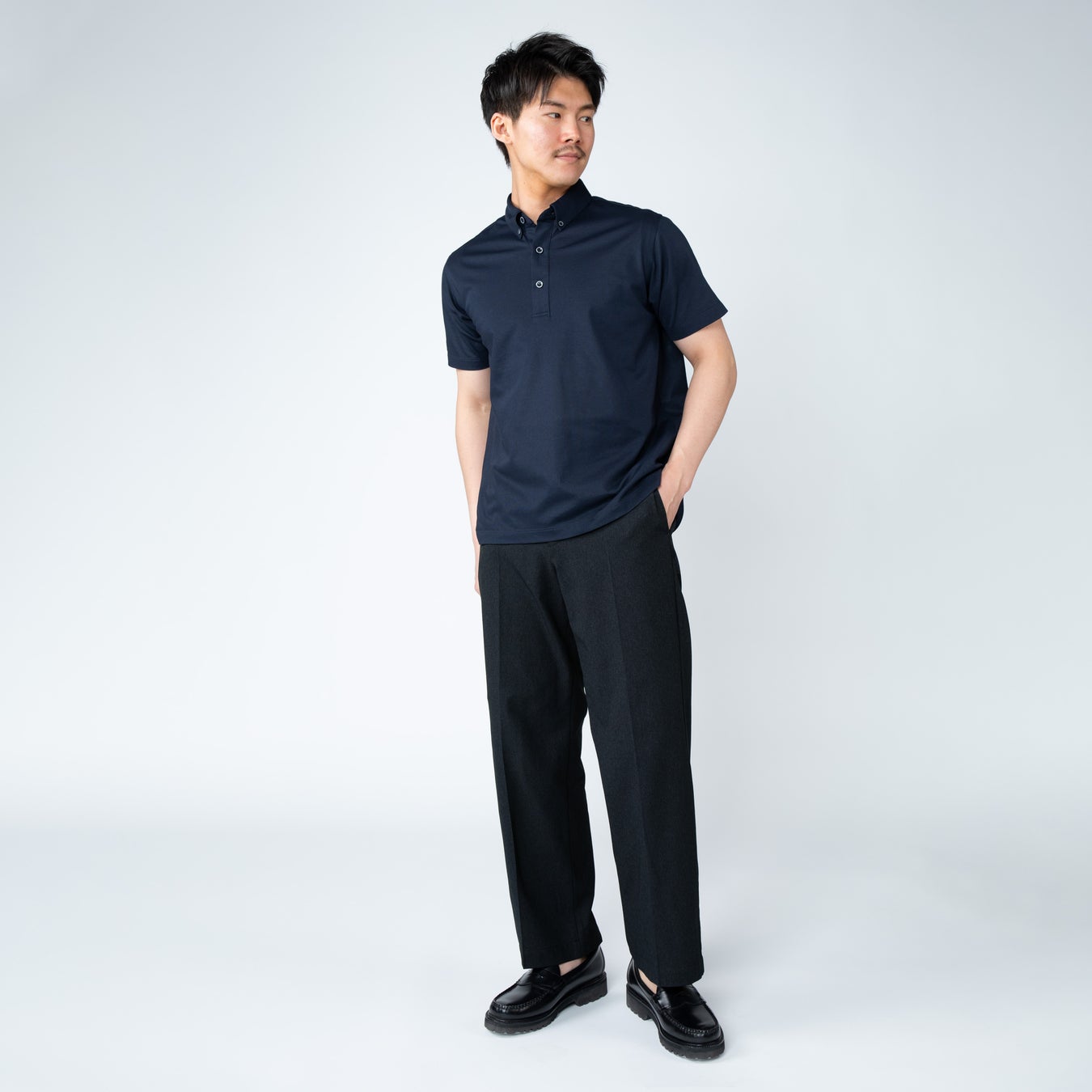 太ももから裾にかけてゆったりとしたシルエットで、背面ゴムによりベルト無しでも着用可能です。ダボつかない適度な太さに仕上げることで、ジャケットと合わせたビジネススタイルやTシャツやシャツに合わせたカジュアルスタイルにも幅広く着回しがききます。