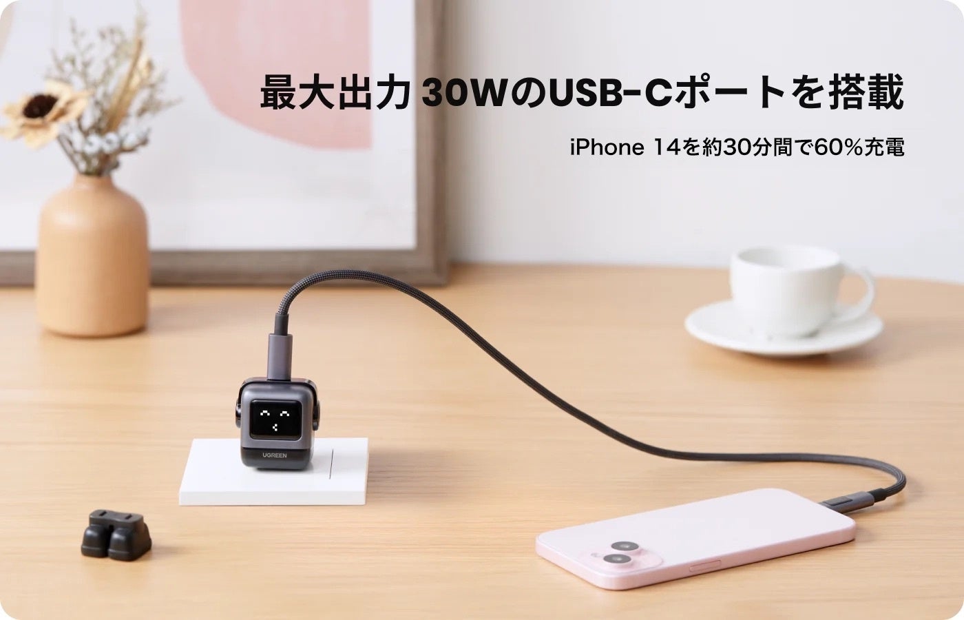 UGREEN Uno RG 急速充電器 30W GaN 1C 新色 ピンク&ブルー | 充電時間をワクワク体験に変える近未来的ロボット型充電器を取扱開始