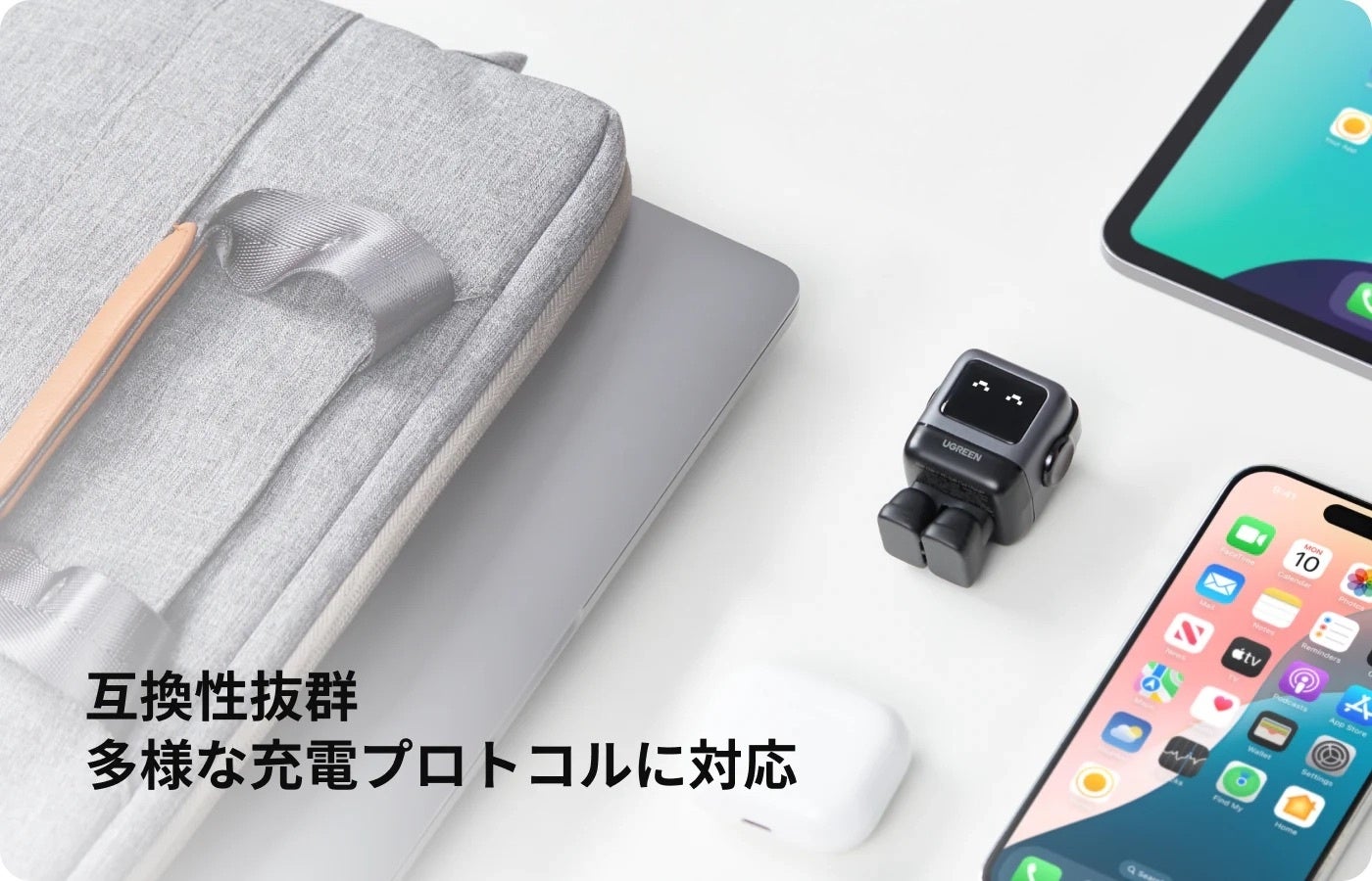 USB PD3.0/QC4+に対応、スマートフォンからタブレット、ゲーム機からノートパソコンまであらゆるUSB関連機器を効率よく急速充電できます。 コンパクトで持ち運びやすいので、どこにでも連れていける友達みたいなロボット型急速充電器です。