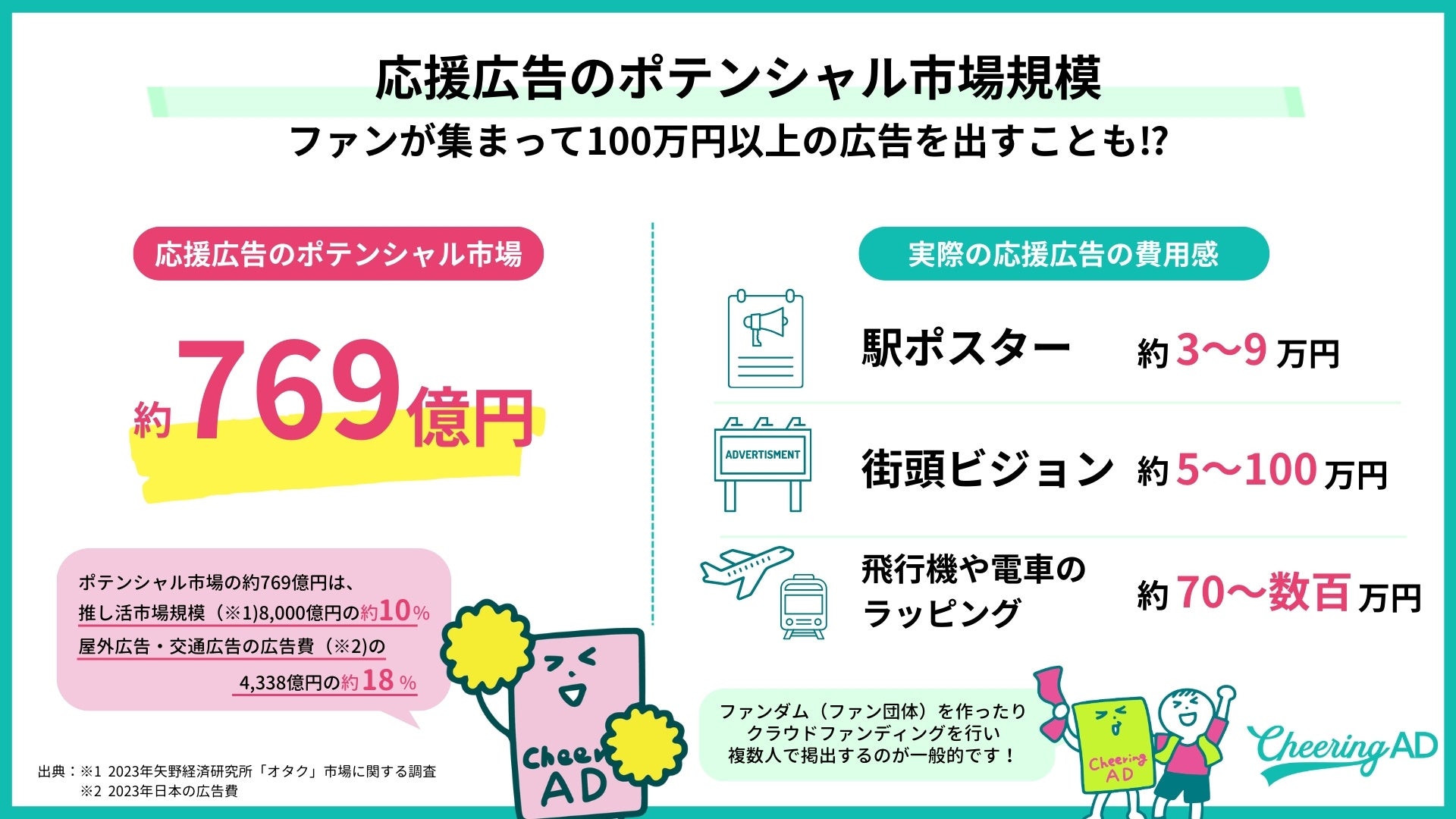 また、推し記念日のお祝い手段として「応援広告」が第3位に選ばれ、そのポテンシャル市場は769億円に達することも判明しました。