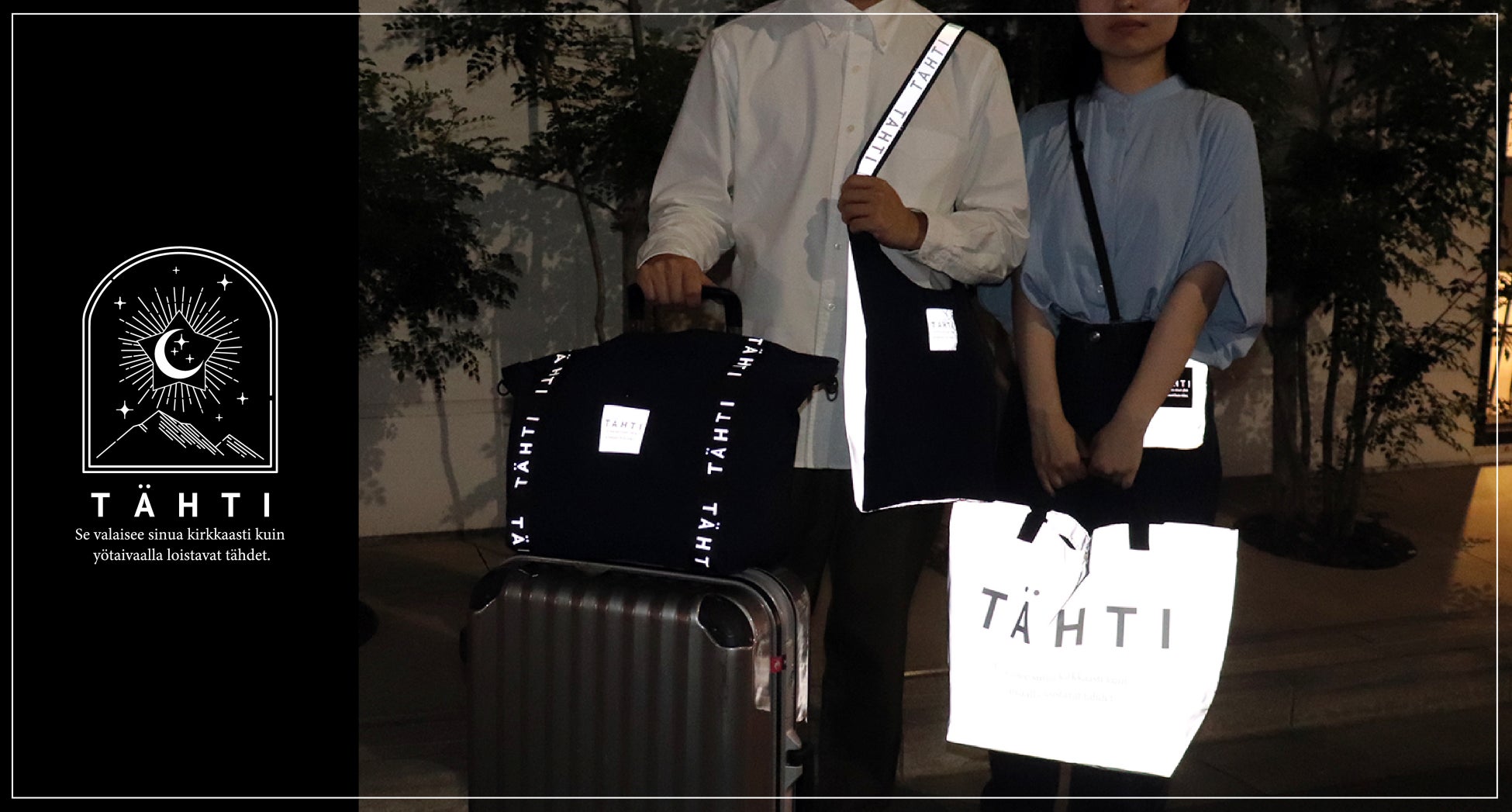 『TÄHTI -タハティ』はフィンランド語で「月」を意味し【光る】をコンセプトにしたブランドです。リフレクター素材が車や街灯の光をキラリと反射し、夜間のお出かけや交通安全に効果的です。また、秋冬の行楽やライブ・夜のショッピングなどで活躍します。デザインはユニセックスでスタイリッシュなテイストが特徴です。