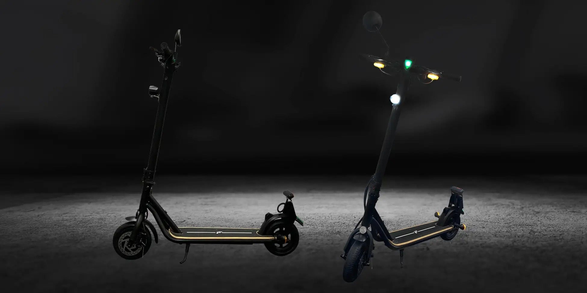 識別点滅等火(最高速度表示灯)、ウィンカー(車体前後装備)、ヘッドライト、バックミラー、警音器、テールランプ、ナンバー灯を装備。明るく大きな前照灯、ウィンカーは原付相当のものを使用し、50m先からも認識可能です。価格は7万円代と歩道/公道走行対応特定小型区分の電動キックボードとしては最安値でリーズナブル。