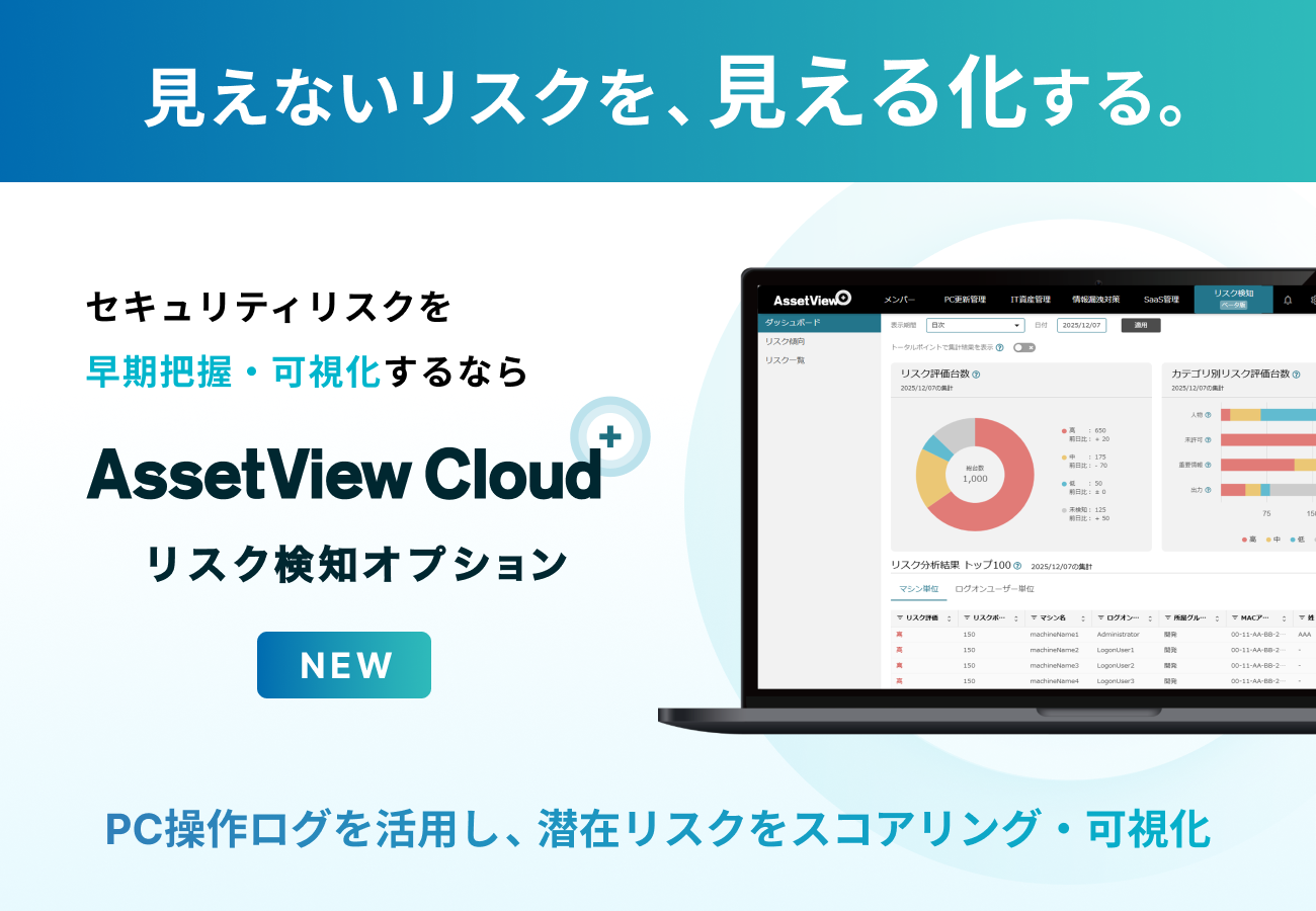 統合型IT運用管理「AssetView」シリーズの新ブランド「AssetView Cloud +」に新オプション『リスク検知』登場
