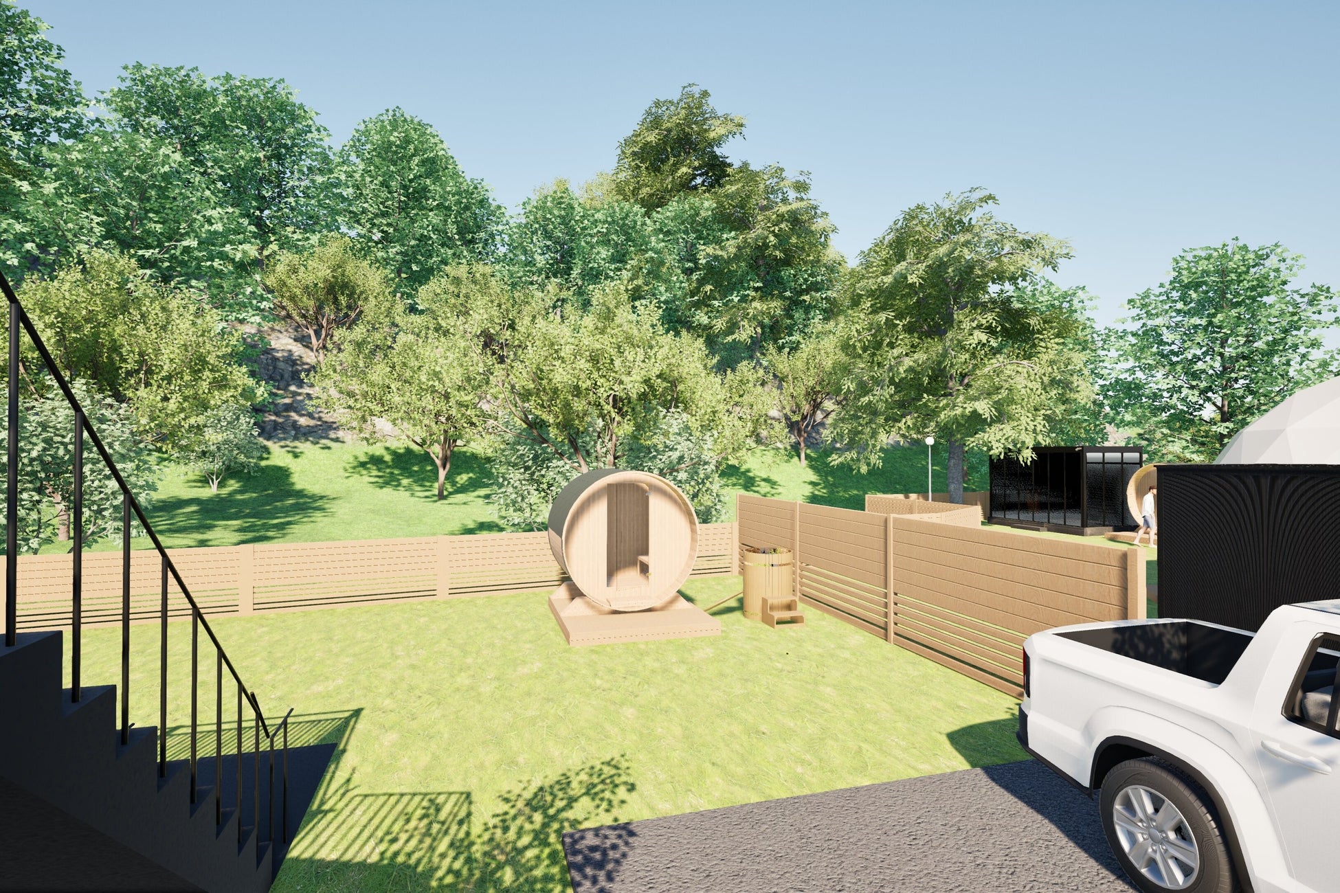 お庭で遊ぶお子様を見守りながら、のんびりとサウナでリラックス。