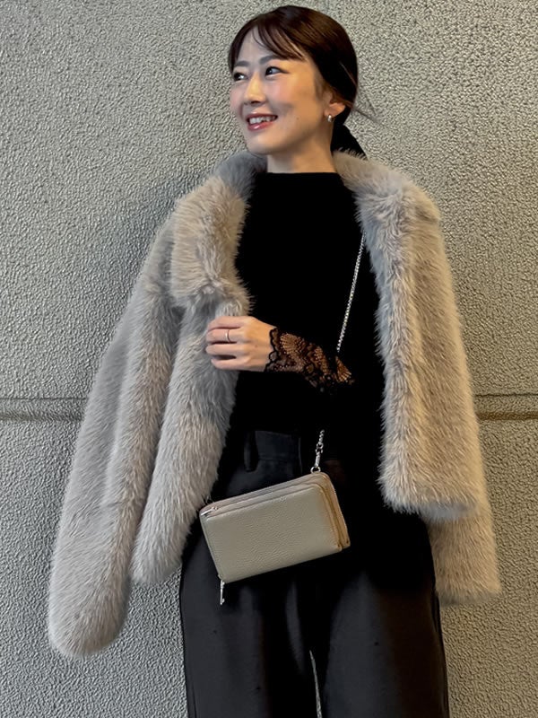 ファー×レースですが、落ち着いたトーンなので大人っぽい印象に。
