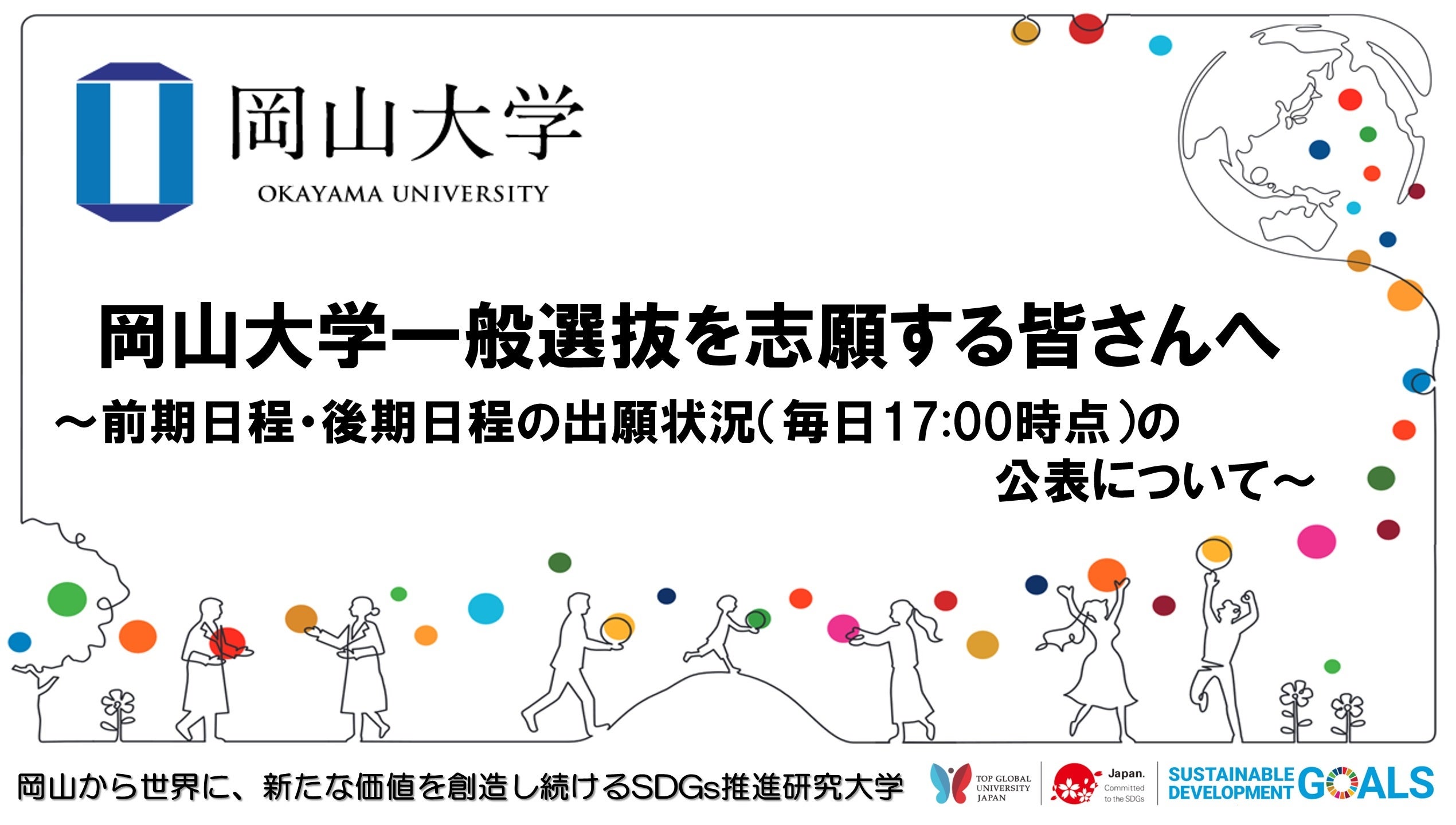 【岡山大学】岡山大学一般選抜を志願する皆さんへ ~前期日程・後期日程の出願状況(毎日17:00時点)の公表について~