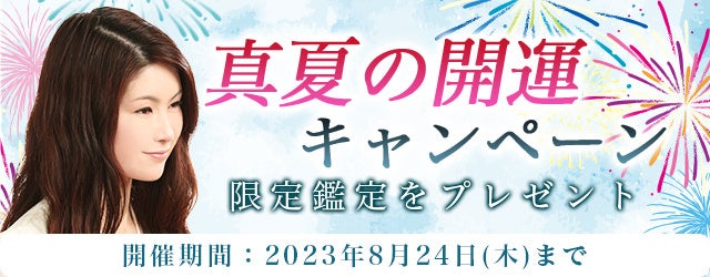 真木あかりの公式占いサイトでは、『真夏の開運キャンペーン』を開催中です。期間中、対象の鑑定を占っていただいた方全員に、期間限定の特別鑑定をプレゼントいたします。
